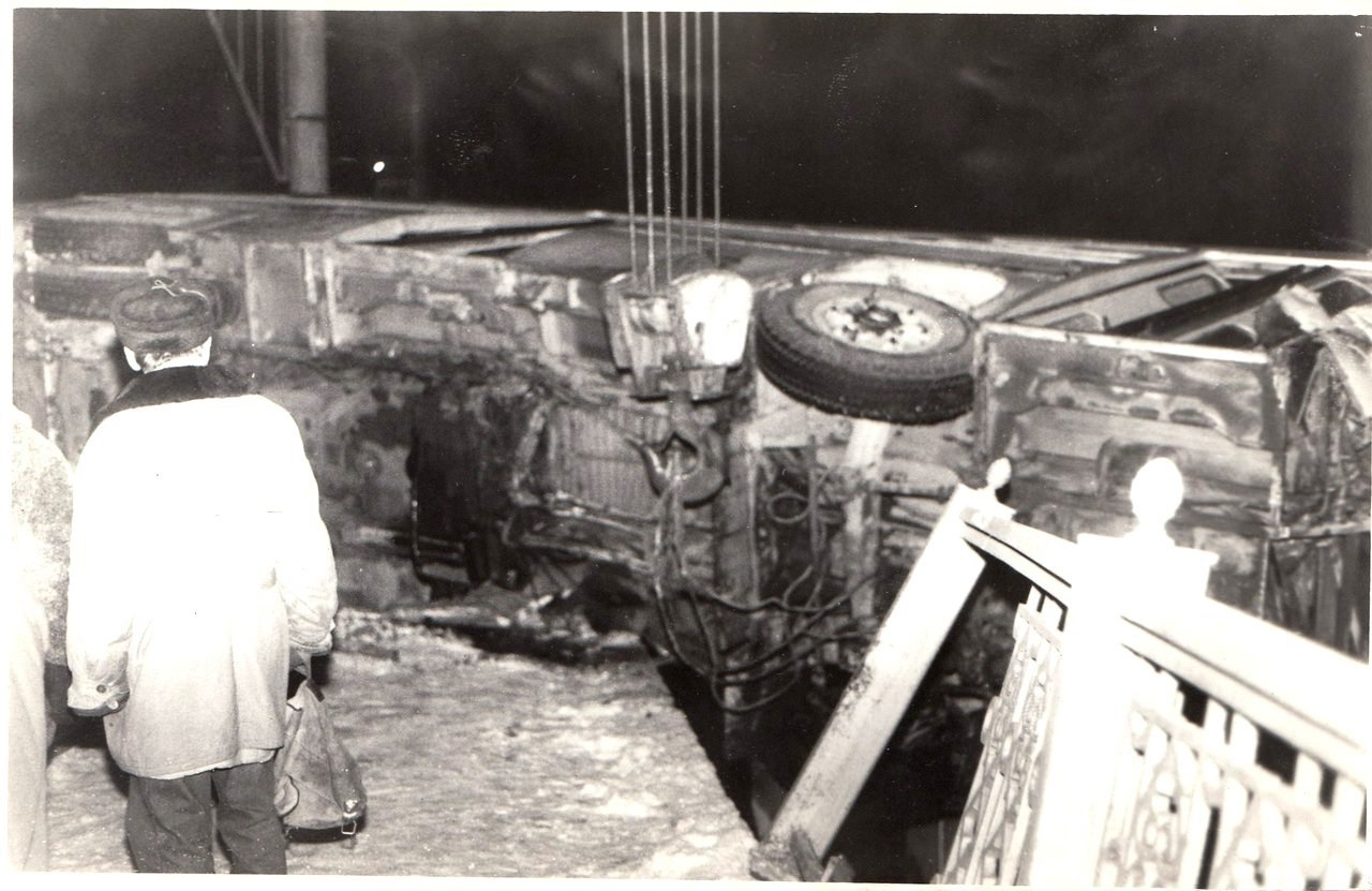 «Только чудом можно объяснить то, что из почти двух сотен пассажиров погиб только один, — сообщал корреспондент «Речи». — Его распростертое на речном льду тело выглядело жутко и нелепо. Смотреть на это не было сил. Остается только гадать, почему автобус не рухнул с моста и не ушел под лед. То ли ограждение моста остановило безумное скольжение «Икаруса», то ли фонарный столб».