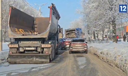 Сразу три фуры перекрыли здесь дорогу. Одна выехала на газон, сообщают очевидцы. На подъездах к отрезку между проспектом Победы и улицей Беляева образовалась пробка.