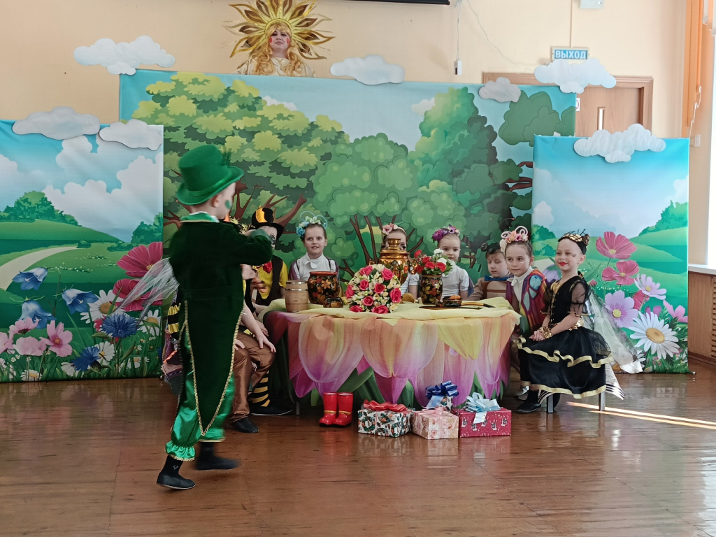 Зрителям запомнился Майский Жук (в исполнении Артема Слободяна), влюбленный в Пчелу. Он очень артистично и звонко исполнил песню «Пчелочка златая». Зрители аплодировали и улыбались от души. А какие красивые Муха-Цокотуха (Леся Колесова) и Комар (Егор Нежданов), просто загляденье! Кузнечик-музыкант (Матвей Ананичев) услаждал слух зрителей, дирижируя детским оркестром. Ребята играли на треугольниках, бубнах, трещотках, металлофоне, бар чаймсе (ударный инструмент, похожий по звучанию на колокольчик), барабанах, диатонических колокольчиках - получилась очень красивая мелодия. Никого не оставил равнодушным и восьмиглазый Паук (в исполнении близнецов Макара и Матвея Рыжковых). Актеры-дошкольники знают, что все роли в сказке главные, даже маленькая роль имеет большое значение.