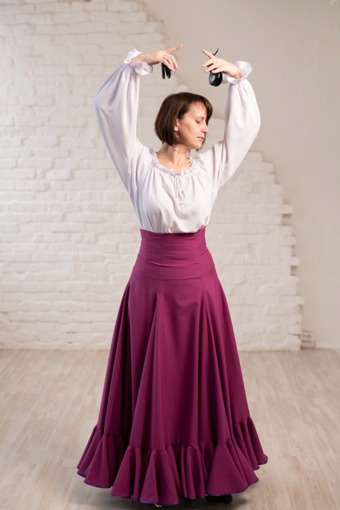 Начав танцевать фламенко, Ольга Филихина по-другому взглянула на юбку макси – таких юбок в ее гардеробе заметно прибавилось.