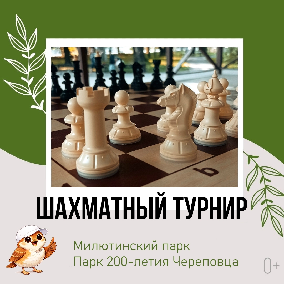 - 12:00 - 15:00 — Шахматный турнир в беседке у пруда от клуба «Гроссмейстер»