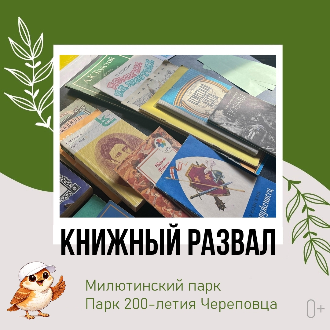 - 12:00 - 15:00 — Книжный развал и викторина от Центральной детско-юношеской библиотеки и Библиотеки № 15