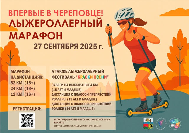 Лыжероллерный марафон «Краски осени» (6+)Старт в 10:00, финиш в 16:00. Мероприятие состоится на Южном шоссе. Планируется проведение марафона на дистанциях 52 км (18+), 24 км (16+), 12 км (16+). Также пройдут забеги на выбывание и дистанции с полосой препятствий. Организаторами мероприятия является спортивная школа №4.. Зрители могут стать частью яркого спортивного события и поболеть за спортсменов.