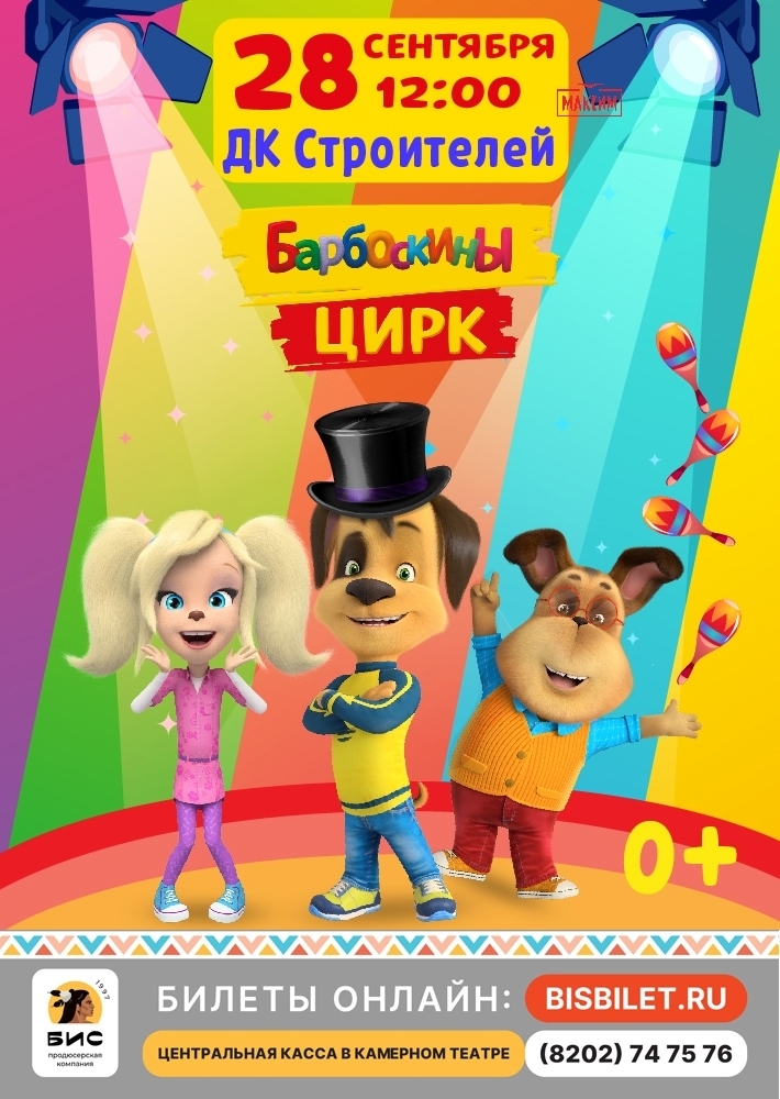 ДКС «Барбоскины цирк» (0+)12:00 Интерактивное игровое шоу ростовых кукол по мотивами знаменитого мультфильма