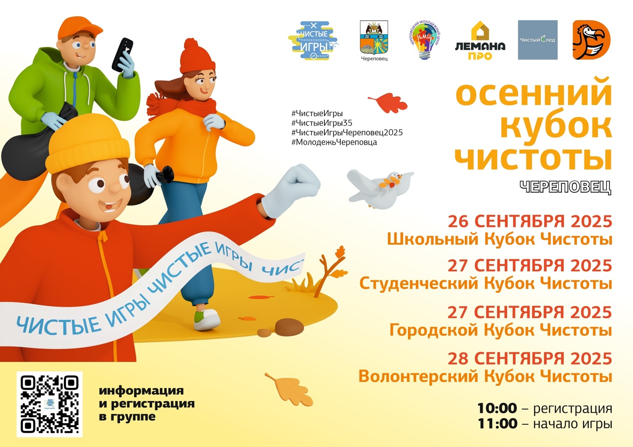 10.00 Городской Кубок Чистоты (12+) Могут принимать участие все жители без исключения. Во время регистрации необходимо выбрать категорию Взрослая, ссылка на регистрацию: vk.cc/cPmykE.