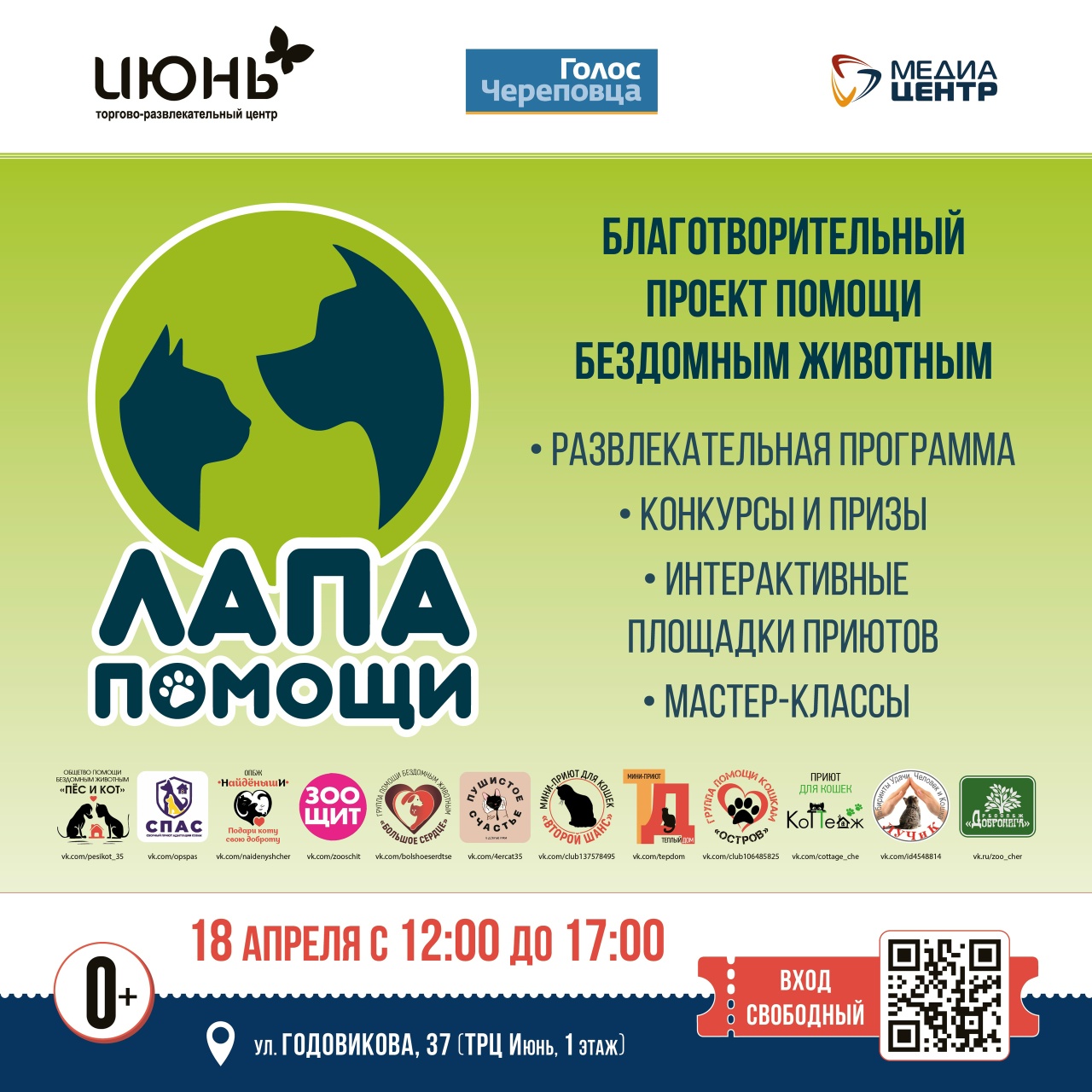 Акция «Лапа помощи» (0+) пройдёт 18 апреля с 12:00 до 17:00 в ТРЦ «Июнь» (ул. Годовикова, 37). Приходите, «хвостикам» нужна ваша поддержка. Что принести на акцию и чем помочь приютам - рассказывали здесь.