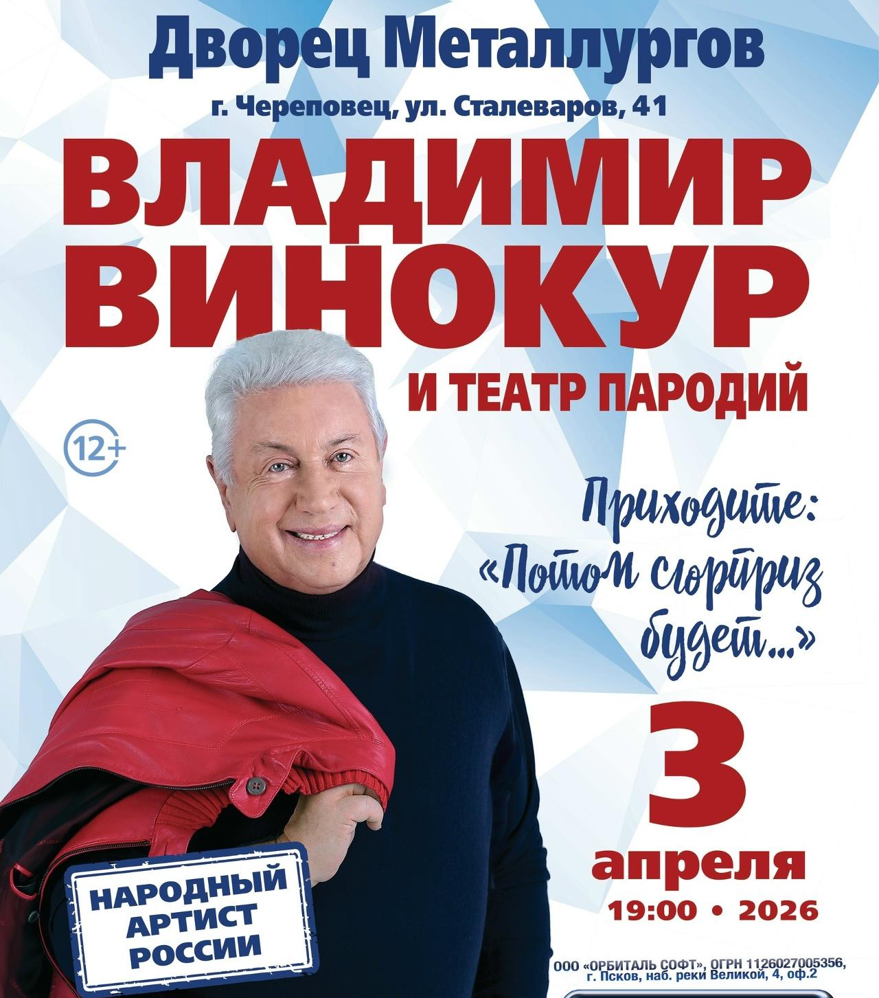 - 19:00 — Владимир Винокур и «Театр пародий» с программой «Приходите, потом сюрприз будет…» (12+) во Дворце металлургов (Сталеваров, 41).