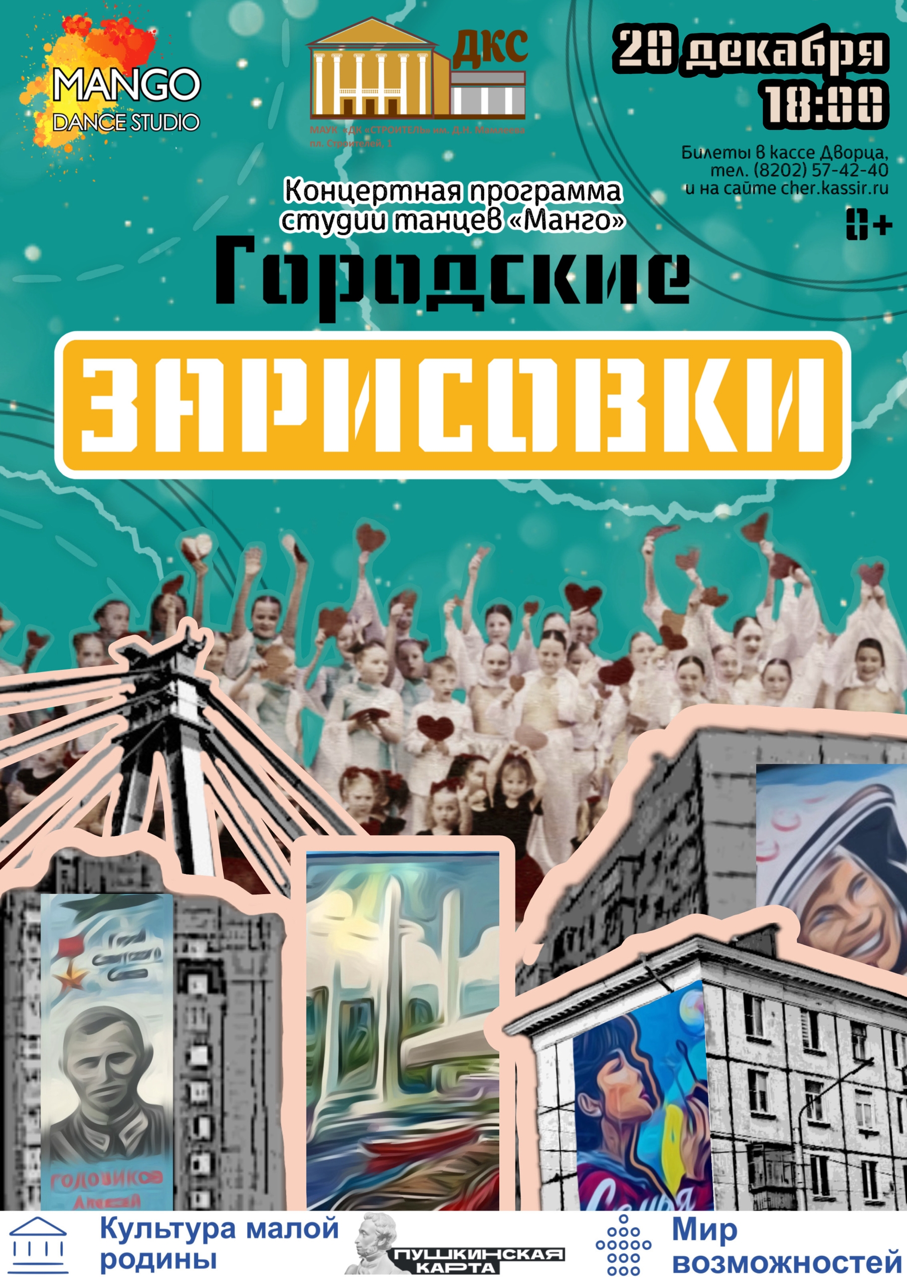 18:00 в концертном зале ДК «Строитель» (пл. Строителей, д. 1) состоится концерт «Городские зарисовки» студии танцев «Манго».