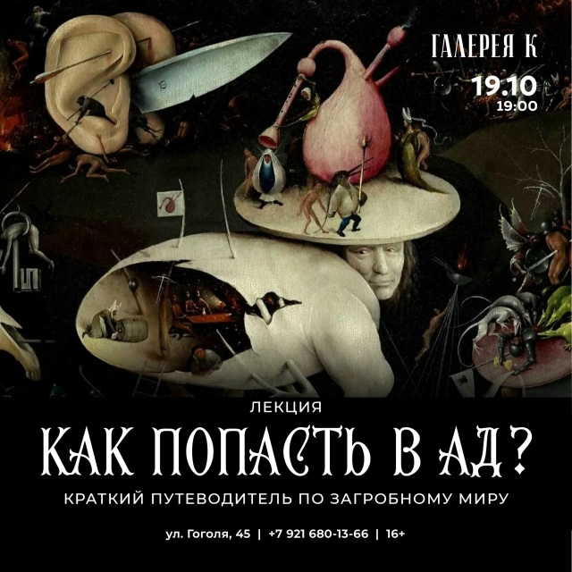 19:00 КАК ПОПАСТЬ В АД (18+): краткий путеводитель по загробному миру - лекция, которую очень ждали и которая, вызывает огромное любопытство.
