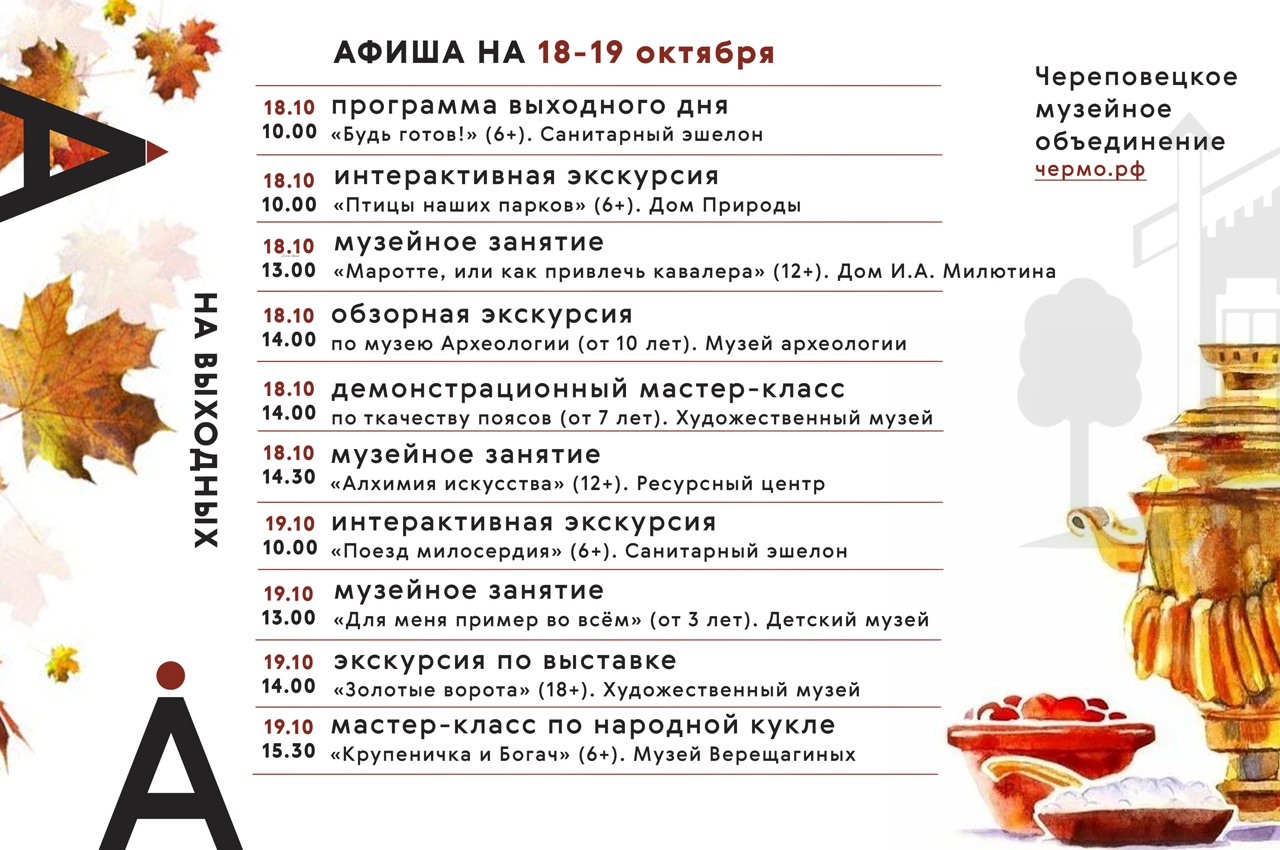 «Череповецкое музейное объединение» представляет афишу на выходные:
