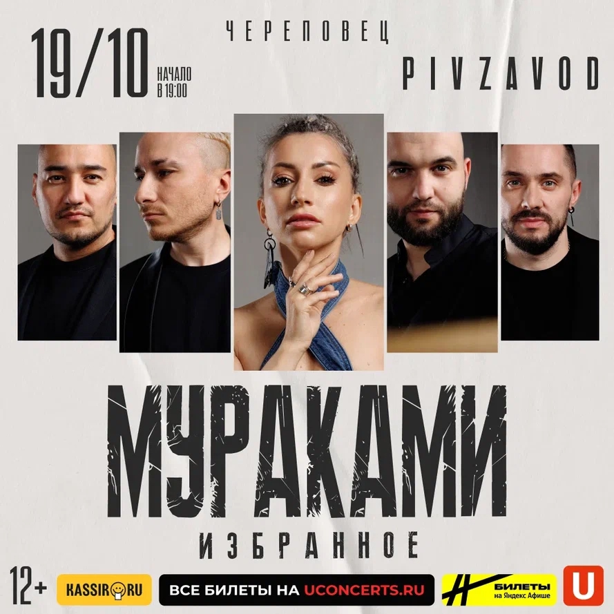 Рок-группа «Мураками» отправляется в тур с программой «Избранное». Громкое название - это избранный сет-лист, который будет составлен на основе выбора поклонников команды. «Гулять» или «Олдбой», «Бред» или «Нулевой километр», «Наутек» или «Везувий», а может быть «Одиночество», «Кепочка» или «Невозможно» - узнать, какие песни вошли в новое шоу «Мураками», можно будет на концерте в Череповце. В постоянном составе группы: Диляра Вагапова (вокал), Раиль Латыпов (гитара), Ильдар Субаев (бас-гитара), Тарас Андреев (барабаны), Рустам Чумарин (гитара).
