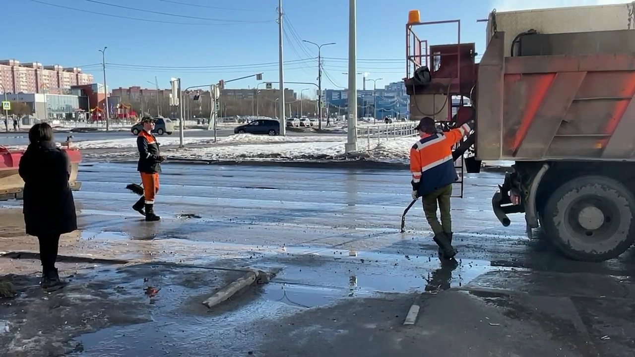 Шекснинский проспект сейчас напоминает полосу препятствий. Именно сюда первым делом зашла ремонтная спецтехника. Коммунальщики работают по традиционной технологии: автомобиль готовит смесь прямо на месте. Как пояснили эксперты, главный враг асфальта весной — это перепады температур: