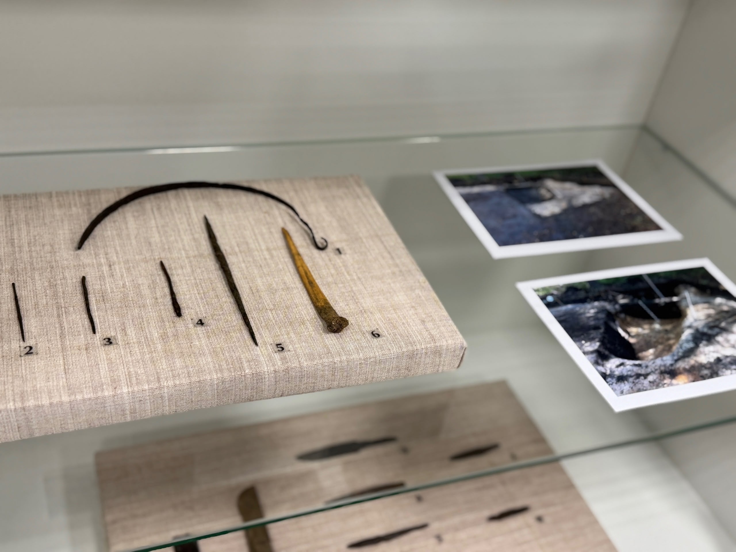 В экспозиции представлены итоги работы двух экспедиций: Череповецкого музейного объединения под руководством заведующего Музеем археологии, кандидата исторических наук Александра Кудряшова и совместной экспедиции ЧерМО и ЧГУ под руководством младшего научного сотрудника кафедры истории и философии Валерии Лукинцевой и научного сотрудника Музея археологии Станислава Воронкова.