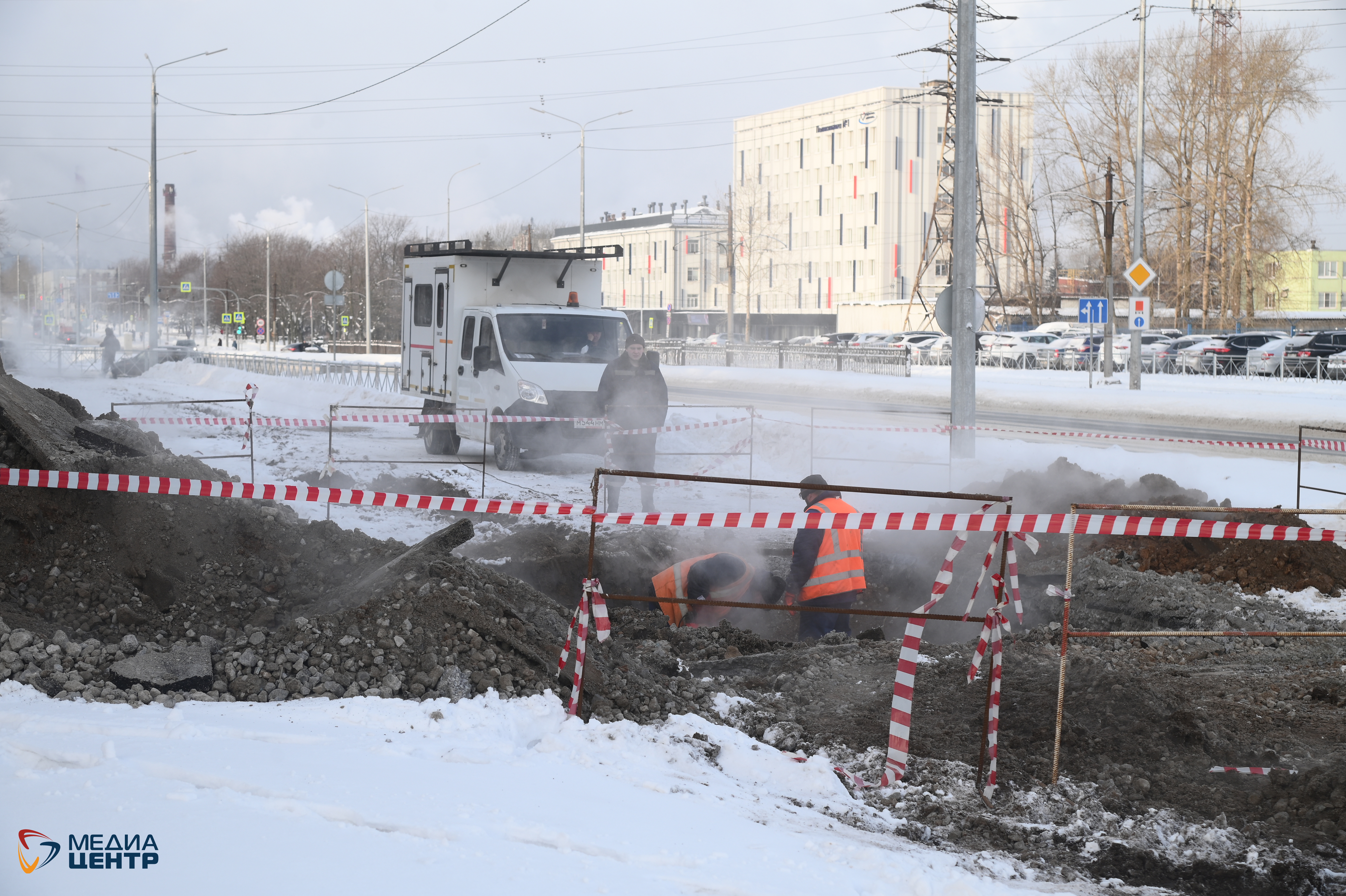 С вечера понедельника в Череповце устраняли аварию на магистральной теплосети на перекрестке улиц Мира и Жукова. Подачу тепла возобновили утром во вторник. Пока шли работы, аварийную подпитку сетей города обеспечивала «Северсталь».