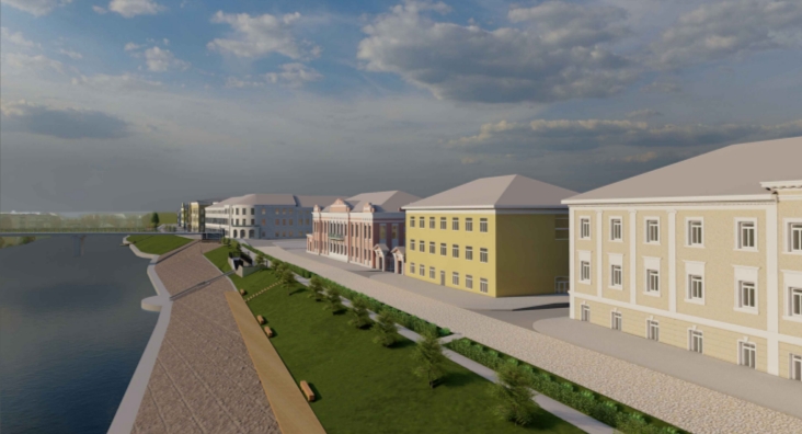 Согласно описанию объекта закупки, в план работ входит: монтаж герба Вологодской области из бронзы, установка чугунных и деревянных скамеек, урн, велопарковки, а также теневого навеса над скамьей. Саму набережную планируют вымостить гранитной плитой.