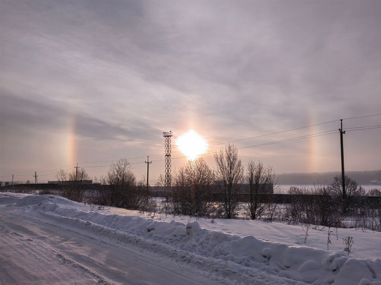 В разных округах области жители запечатлели гало — оптическое явление, возникающее в атмосфере в ясную морозную погоду. Как говорит интернет, существует множество типов гало, но все они вызваны преимущественно ледяными кристаллами в перистых облаках в верхних слоях тропосферы на высоте 5-10 км.