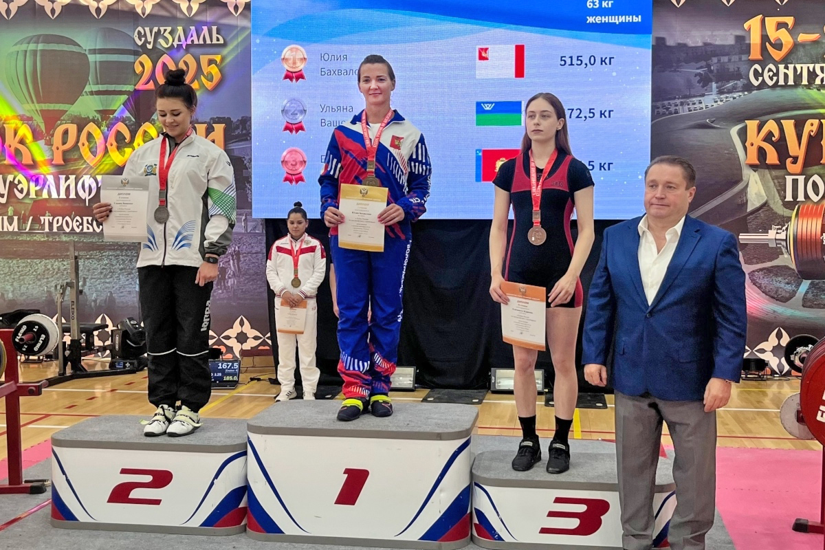 Череповецкая спортсменка Юлия Бахвалова стала победительницей Кубка России по пауэрлифтингу (троеборью), который прошел в Суздале. В напряженной борьбе в весовой категории до 63 кг Юлия Бахвалова показала лучший результат.