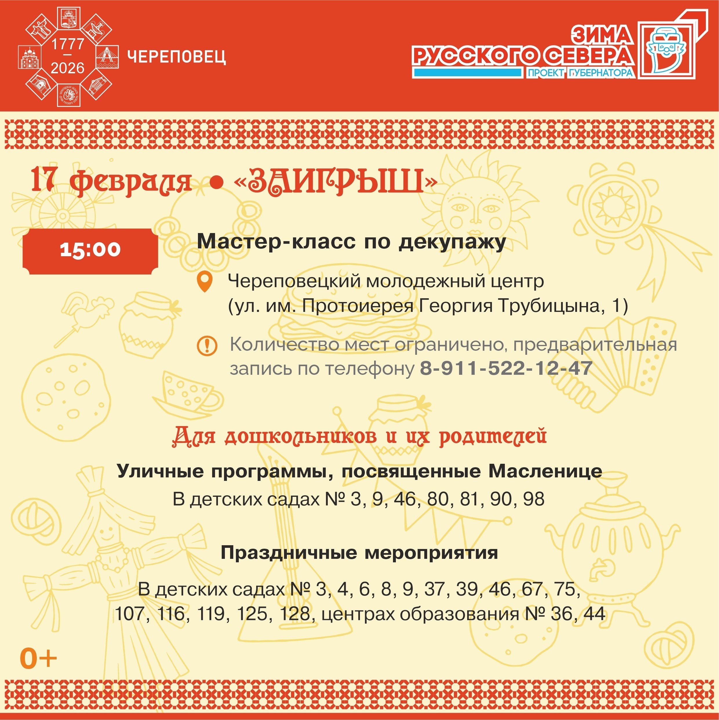 • Вторник, 17 февраля — «Заигрыш». Уличные гуляния пройдут в детских садах.