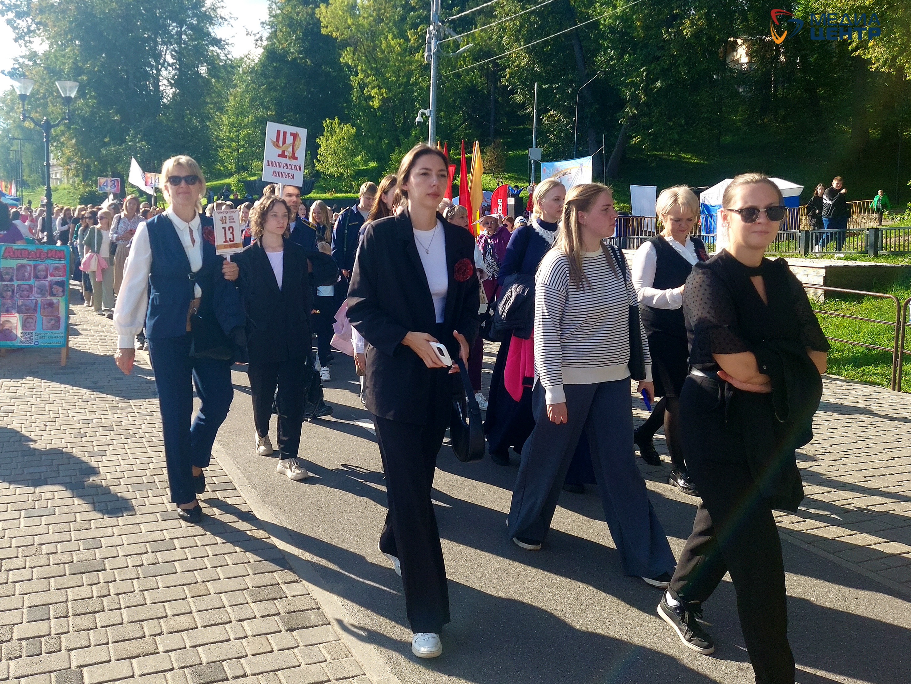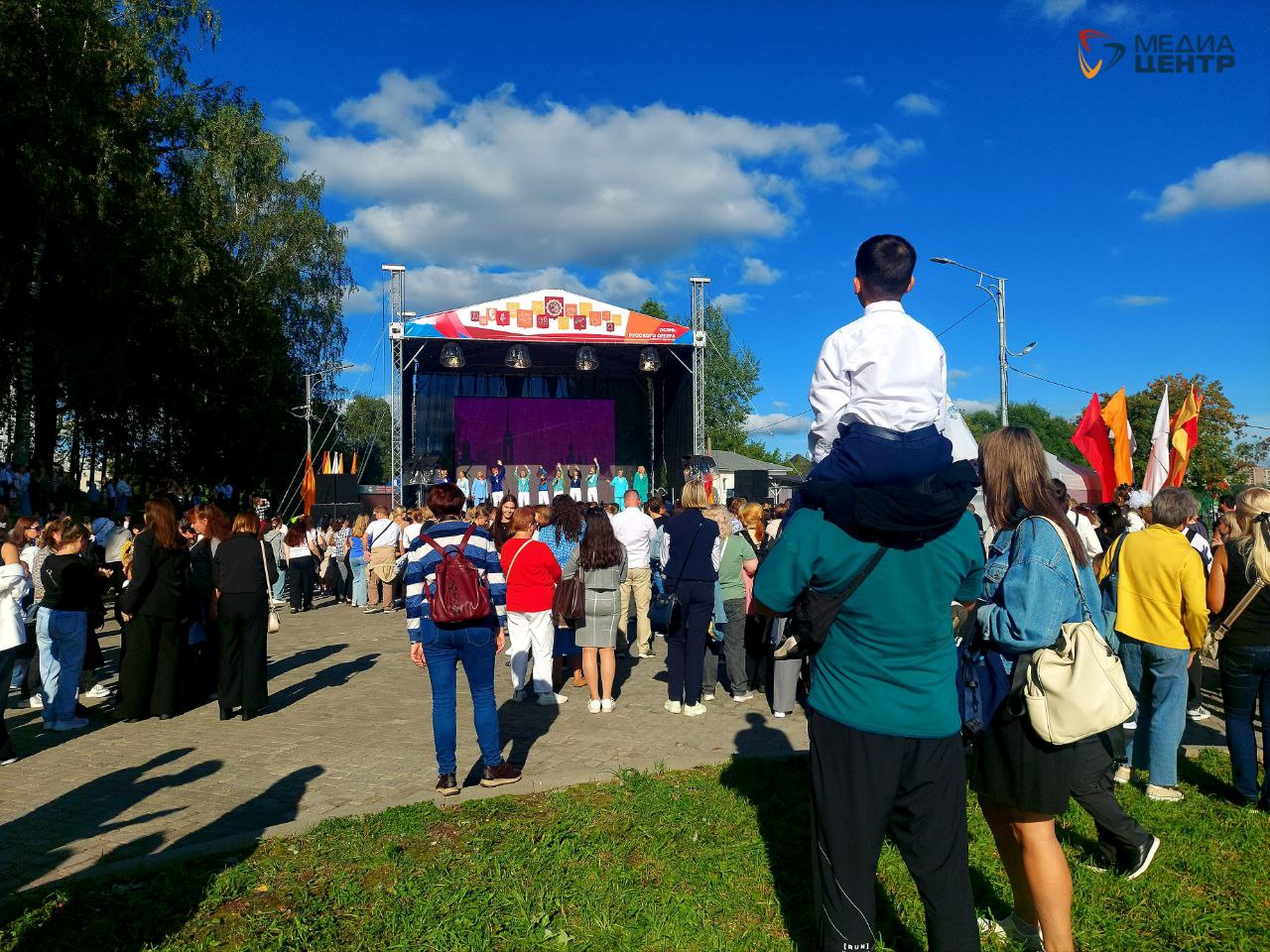 У главной сцены школьники организовали флешмоб, а после посмотрели концерт с участием коллективов учреждений Череповца. Старшеклассники символично передали эстафету знаний младшим школьникам. В ответ прозвенели колокольчики.