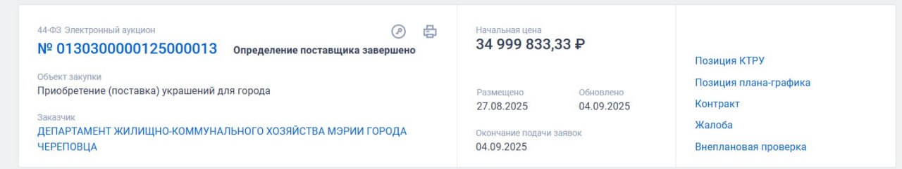 Соответствующий документ опубликовали на сайте Госзакупок ещё в сентябре.