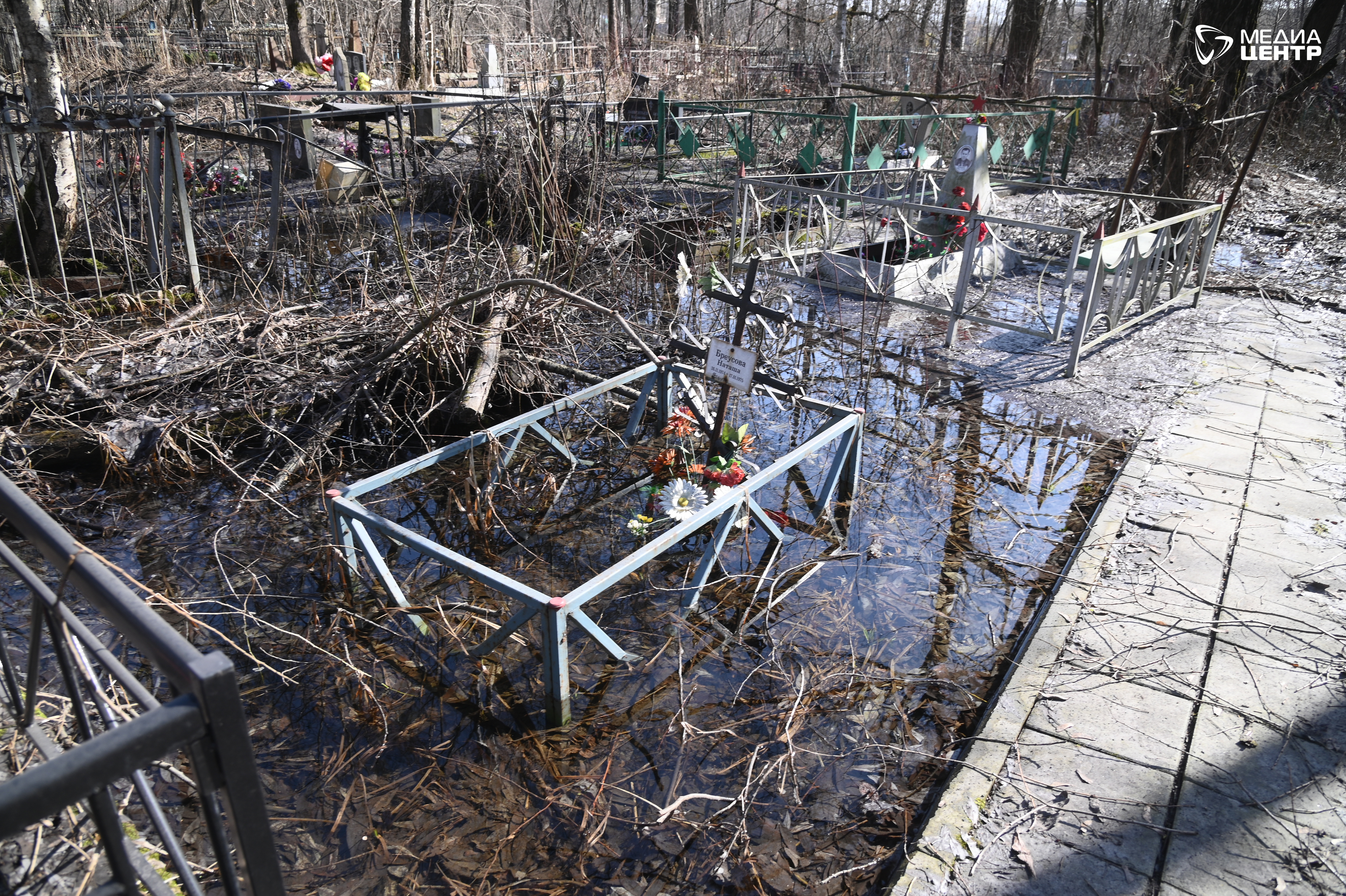 Корреспонденты «Речи» решили оценить обстановку на череповецких погостах. В пятницу, 3 апреля, мы посетили кладбища № 1, 4 и 5. Особого внимания требует первое, прежде всего — удаленные его участки с затопленными могилами, разросшимся кустарником, поваленными деревьями и ковром из веток и прошлогодних листьев. На кладбищах на улице Боршодской в целом все не так печально. Единственное, на пятом, в секторе с недавними захоронениями, было еще достаточно сыро, что значительно затрудняло доступ к могилам, особенно тем, которые находятся в центре этого участка.
