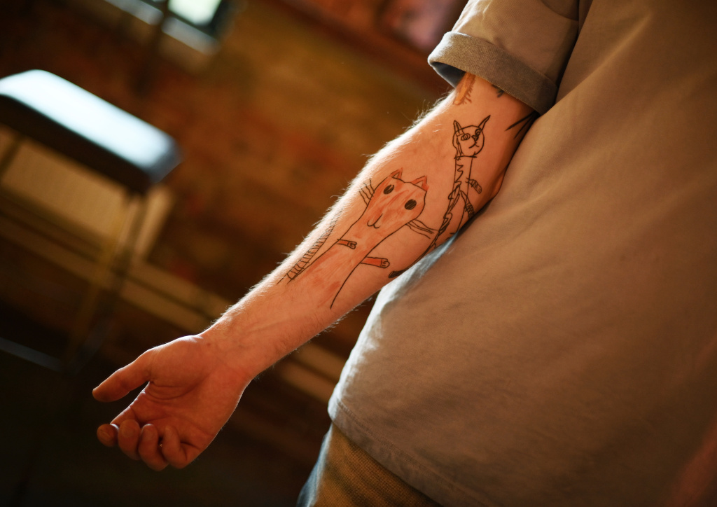 Алексей Ярыгин, приглашенный гость, и по совместительству настоящая легенда среди клиентов Ефима Кершина-Шувалова. Дело в том, что Алексей носитель не совсем стандартных изображений на коже. Вот уже пять лет мужчина коллекционирует рисунки своего сына, перенося их на тело в виде татуировки.- Я не особо интересуюсь татуировками. И долго ничего не делал, потому что для меня всегда было странно просто носить на себе узоры. До этого я был знаком всего с парой наших мастеров, а оказалось, их достаточно много в городе, судя по количеству участников и гостей мероприятия. Считаю, что это отличная возможность для обычных людей познакомиться с разнообразием стилей и направлений в татуировке, оценить качество работ, найти своего мастера, — говорит приглашенный гость Алексей.
