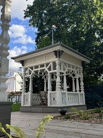 В номинации «Малый объект» представлена деревянная беседка дома Красильникова, расположенная по тому же адресу. В её резьбе можно увидеть мотивы декора подкарнизных элементов и крылец дома.