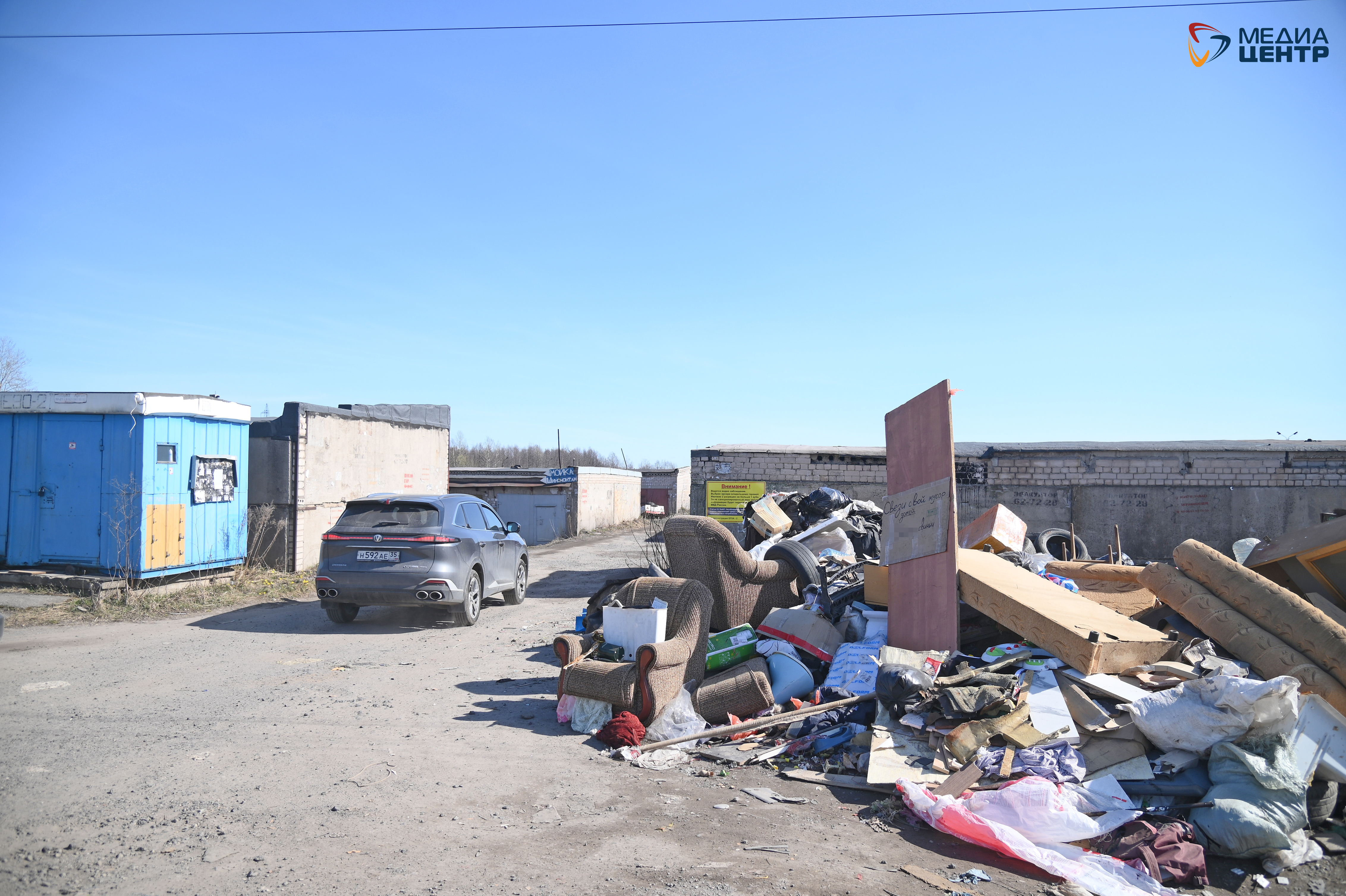 А откуда вообще столько отходов? По словам членов гаражного кооператива, подозреваемых много. Это и дачники с причалов, и посетители кладбища, и клиенты шиномонтажа, который находится тут же, на территории ГК, а также некие личности, на «Газелях» привозящие сюда строительный мусор из города.