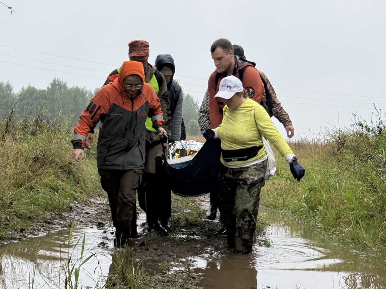 Найденную переодели в сухое, укутали термоодеялом, дали теплое питье. Дальше — эвакуация. Сама она идти не могла, ее понесли на носилках. На помощь пришли другие группы. Обратно все пробирались через ливень, плотины бобров, лужи по колено. Около шести утра эвакуированную передали в надежные руки медиков скорой помощи. Позже дочь пенсионерки написала в комментариях слова благодарности поисковикам: «Какое же счастье было у детей, что бабушку нашли живой! Она у нас героиня — у нее 7 внуков! Старший участвовал в эвакуации».