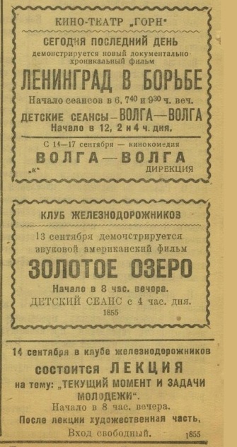 В одном из февральских номеров в 1944 году в разделе «Письма в редакцию» гражданин Демин жаловался на кинотеатр «Горн».
