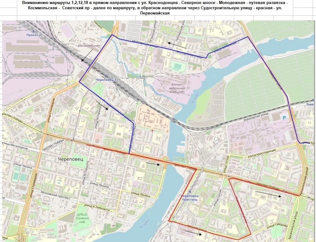 В связи с ограничением движения под мостом на Судостроительной улице, маршруты общественного транспорта 1, 2, 12 и 18 будут следовать по следующим схемам: в направлении из центра города — от улицы Краснодонцев через Северное шоссе, Молодежную, путевую развязку, Комсомольскую и Советский проспект до конечной остановки. В обратном направлении движение будет осуществляться через Судостроительную, Красную и Первомайскую улицы.