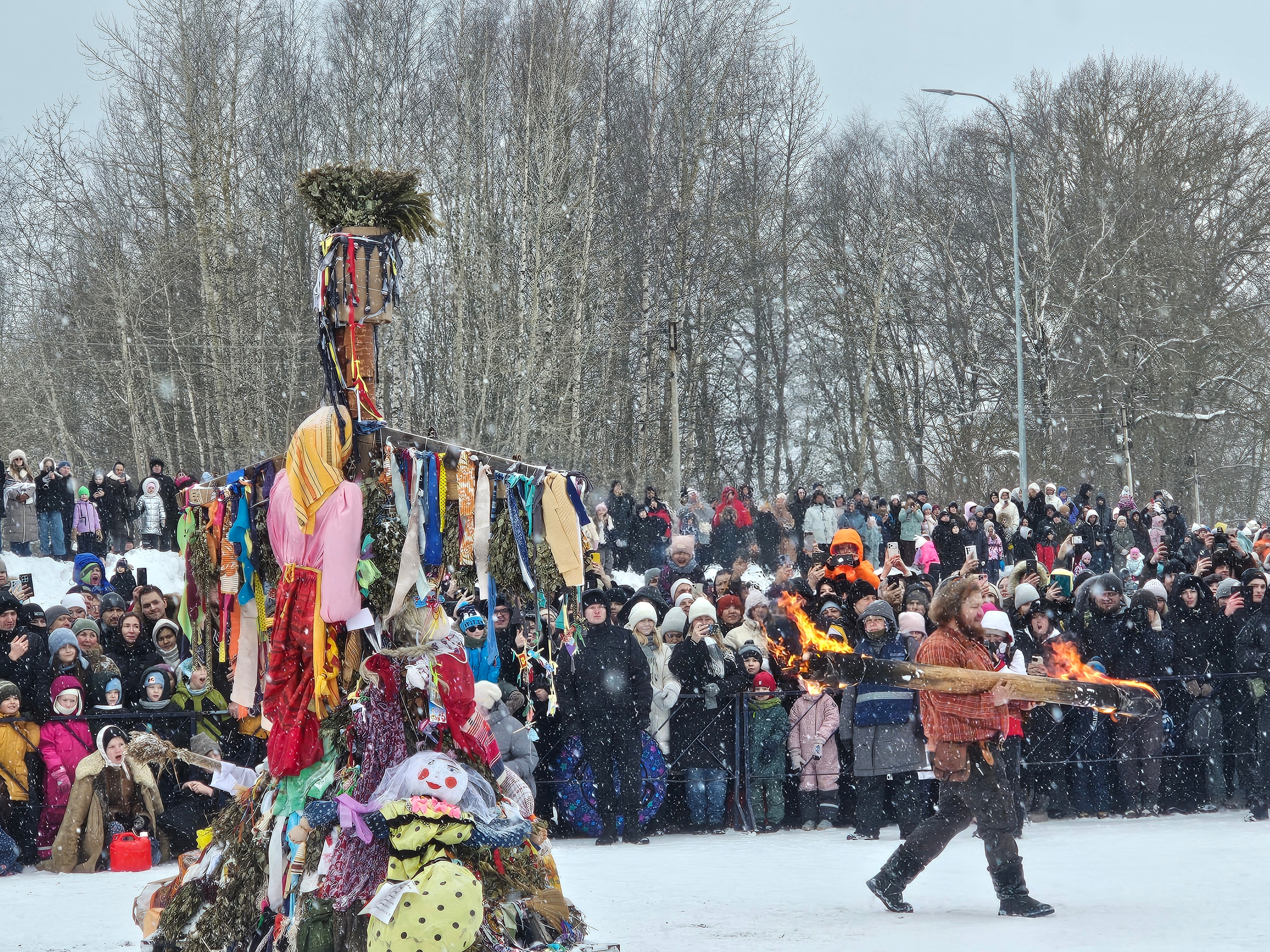 Кульминацией праздника стало сожжение чучела. В Усадьбе Гальских к огромной Масленице горожане привязывали маленьких кукол-оберегов — символ домочадцев, достатка и благополучия. Древний ритуал символизировал проводы зимы и надежду на скорое тепло.