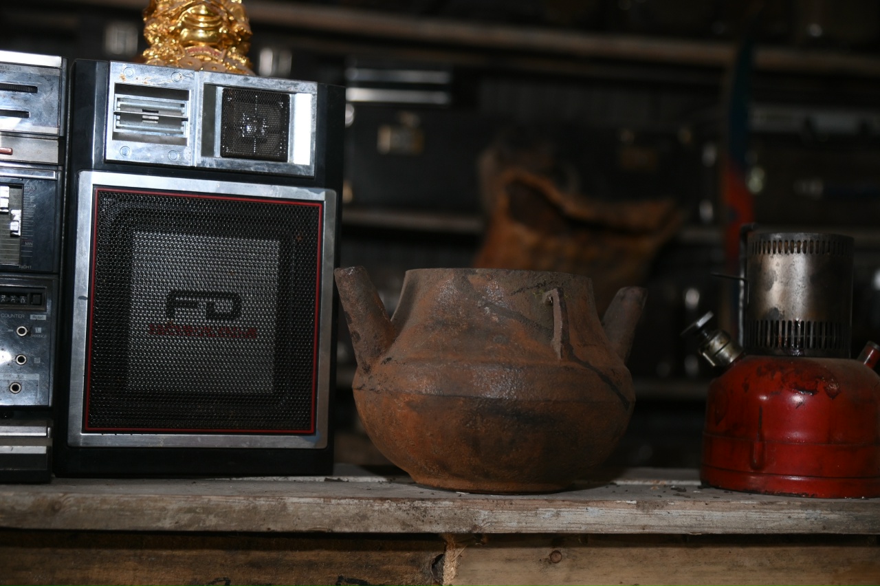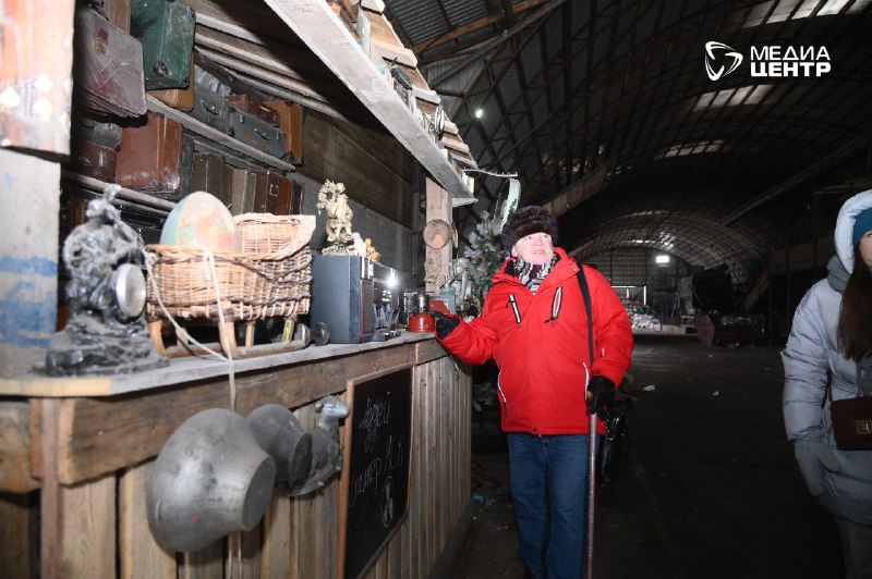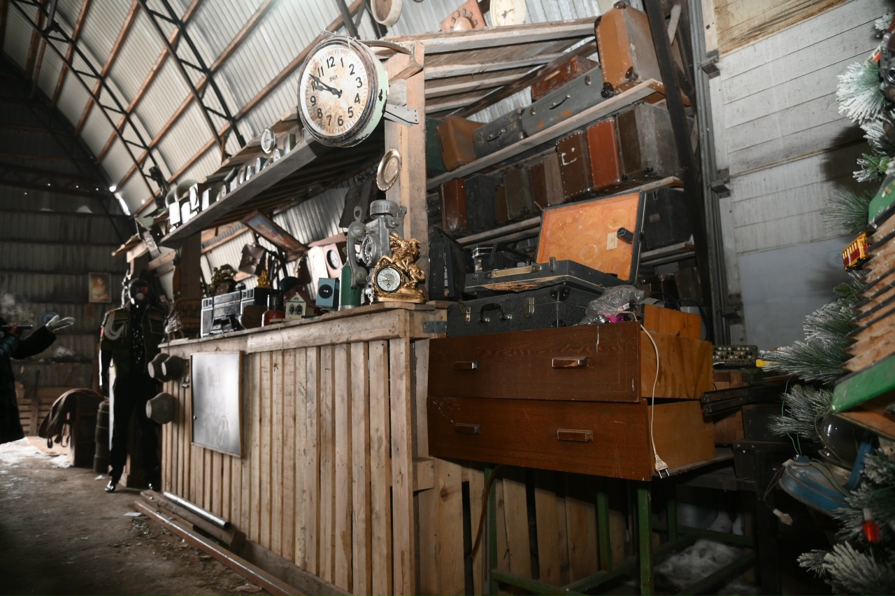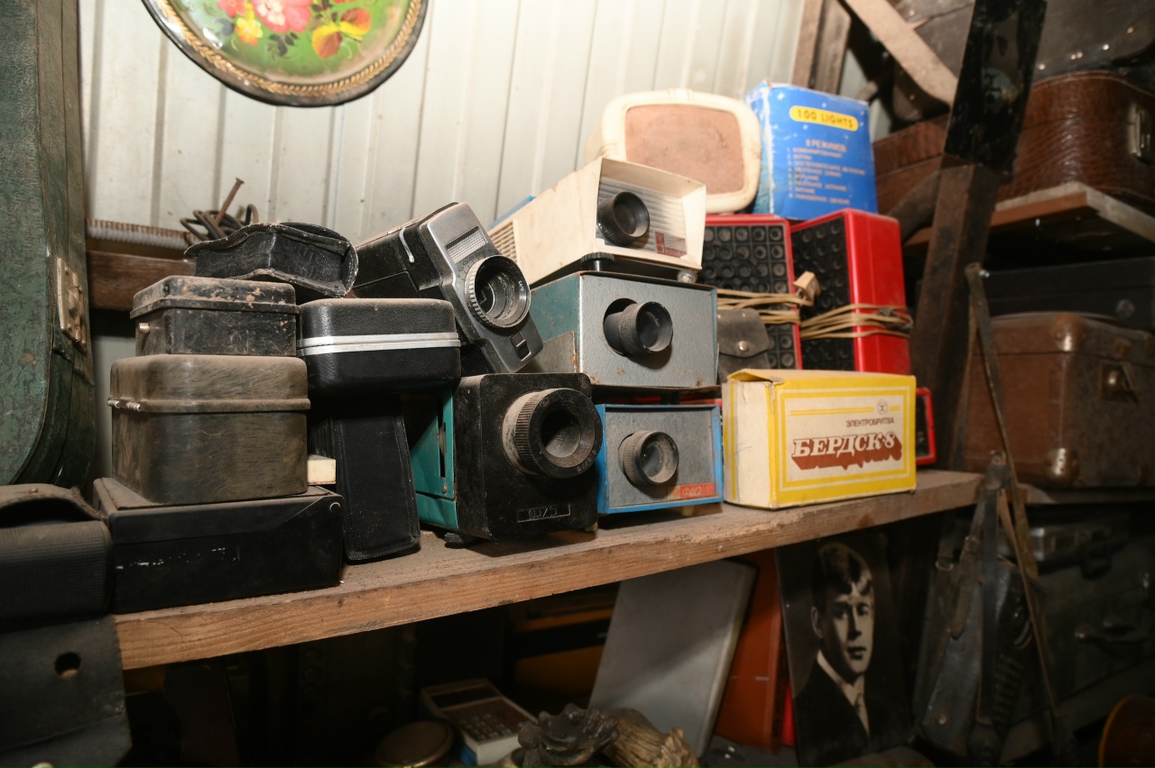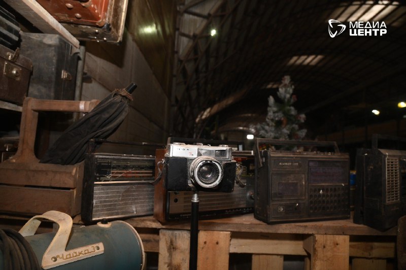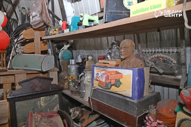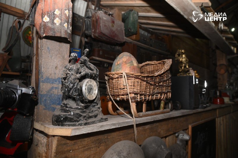 После шума прессов и гула конвейера мы проходим в угол цеха, который кажется порталом в другое измерение. Среди индустриального пейзажа из биг-бэгов и металла вдруг возникают стеллажи. На них — не мусор, а вещи с историей. Патефоны соседствуют с советскими фотоаппаратами, старые чемоданы громоздятся друг на друга, а с полки сурово смотрит бюст Ленина, покрытый благородной патиной времени. Это не свалка, это именно музей: стихийный, живой, настоящий.