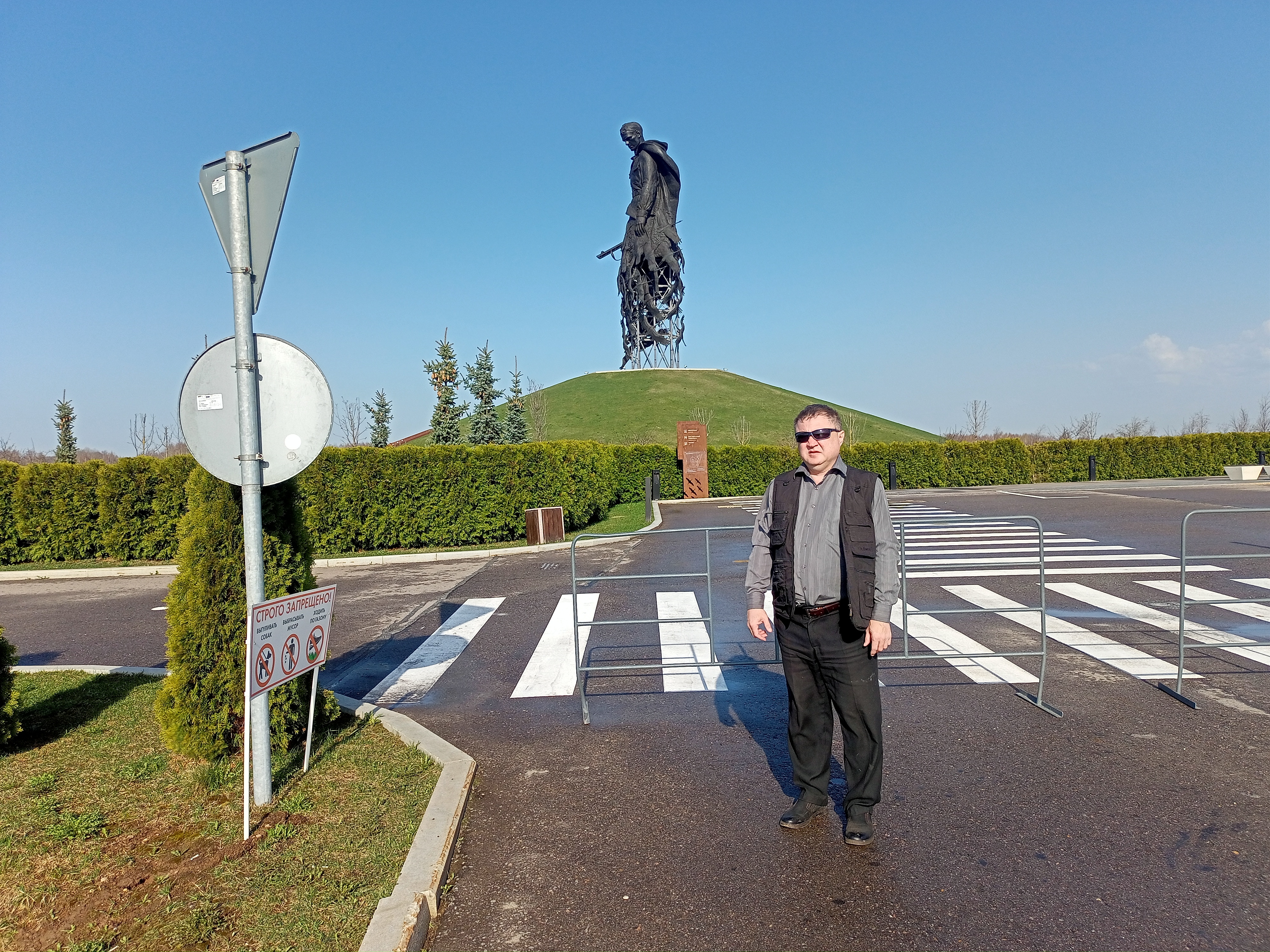 9 утра, подъехали к Ржевскому мемориалу Советскому солдату, посвященному памяти павших в боях подо Ржевом в 1942-1943 годах в ходе Великой Отечественной войны — к тому самому Солдату с журавлями. Сильные впечатления. Что было неудобно — к самому мемориалу не подъехать, автомобиль нужно оставлять за 400 метров. Парковка у памятника закрыта. Не хотелось терять время, поставили авто под «кирпич», сделали фотографию, поехали дальше.