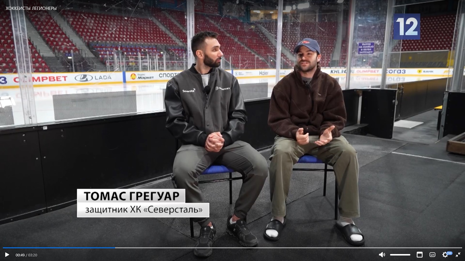 Двое канадских защитников выступают в хоккейной «Северстали». Иоаннис Калдис отыграл уже три сезона, Томас Грегуар завершил первый. «Канал 12» взял у игроков интервью о хоккее и жизни в России. Публикуем несколько высказываний канадцев.