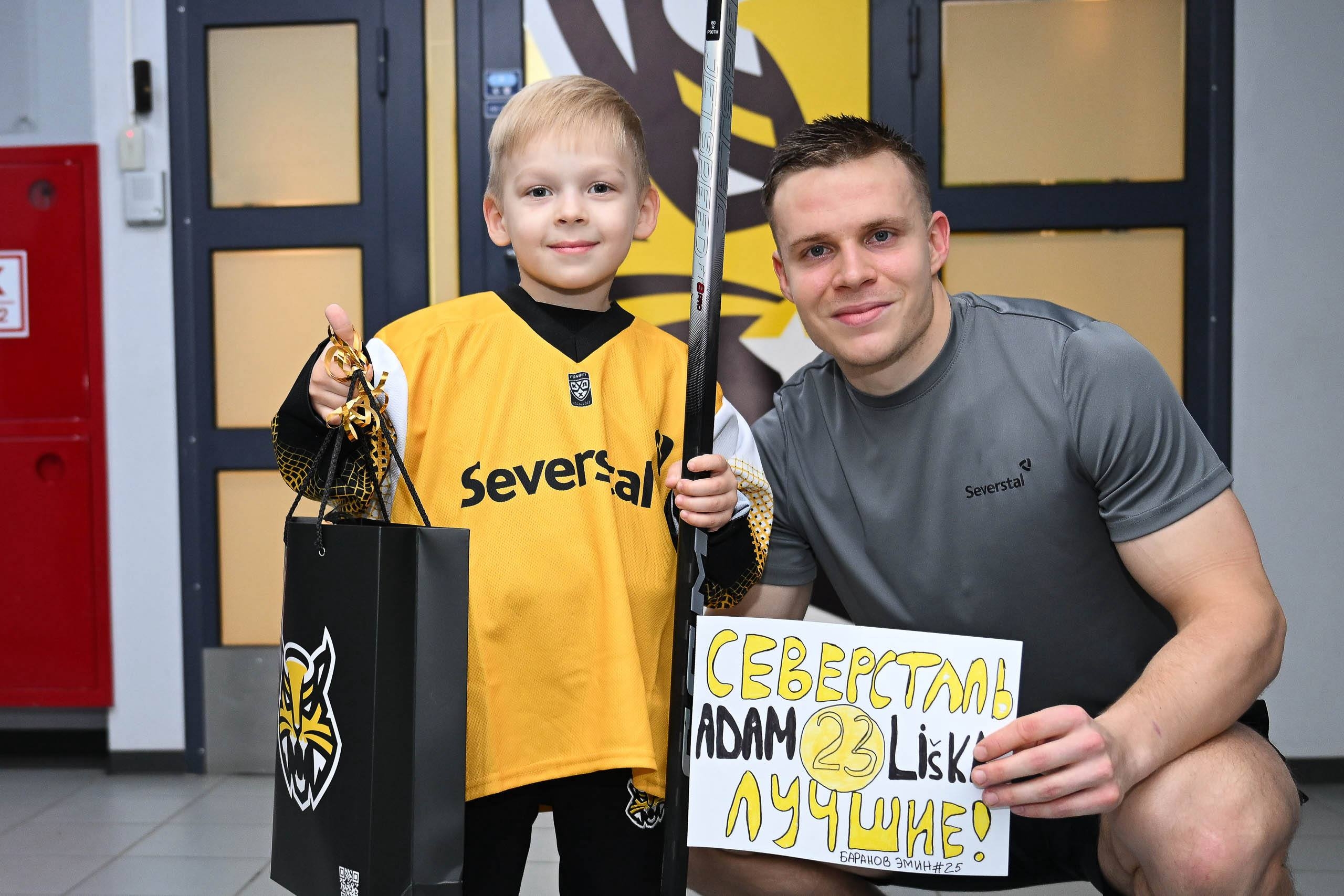 Маленькому хоккеисту удалось познакомиться с Адамом Лишкой и получить в подарок ту самую заветную клюшку. Приятным бонусом стал поход в самое сердце команды — победную раздевалку.