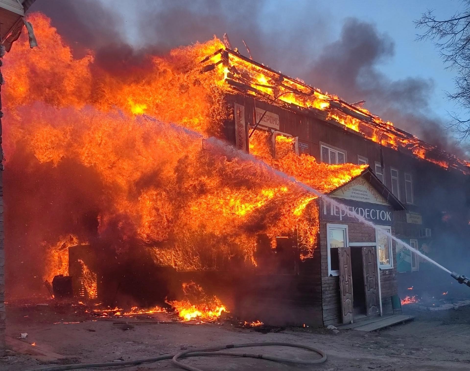 Из-за сильного ветра и сухой погоды огонь стал быстро распространяться на соседние постройки. Загорелись ТД «Перекресток», два здания, где располагались аптека, цветочный магазин, офис мобильной связи, а также двухквартирный жилой дом, гараж администрации округа. Ветер погнал огонь дальше: в двух местах заполыхала сухая трава, загорелись нежилой дом на расстоянии 400 метров и хозпостройки в 800 метрах от основного очага.