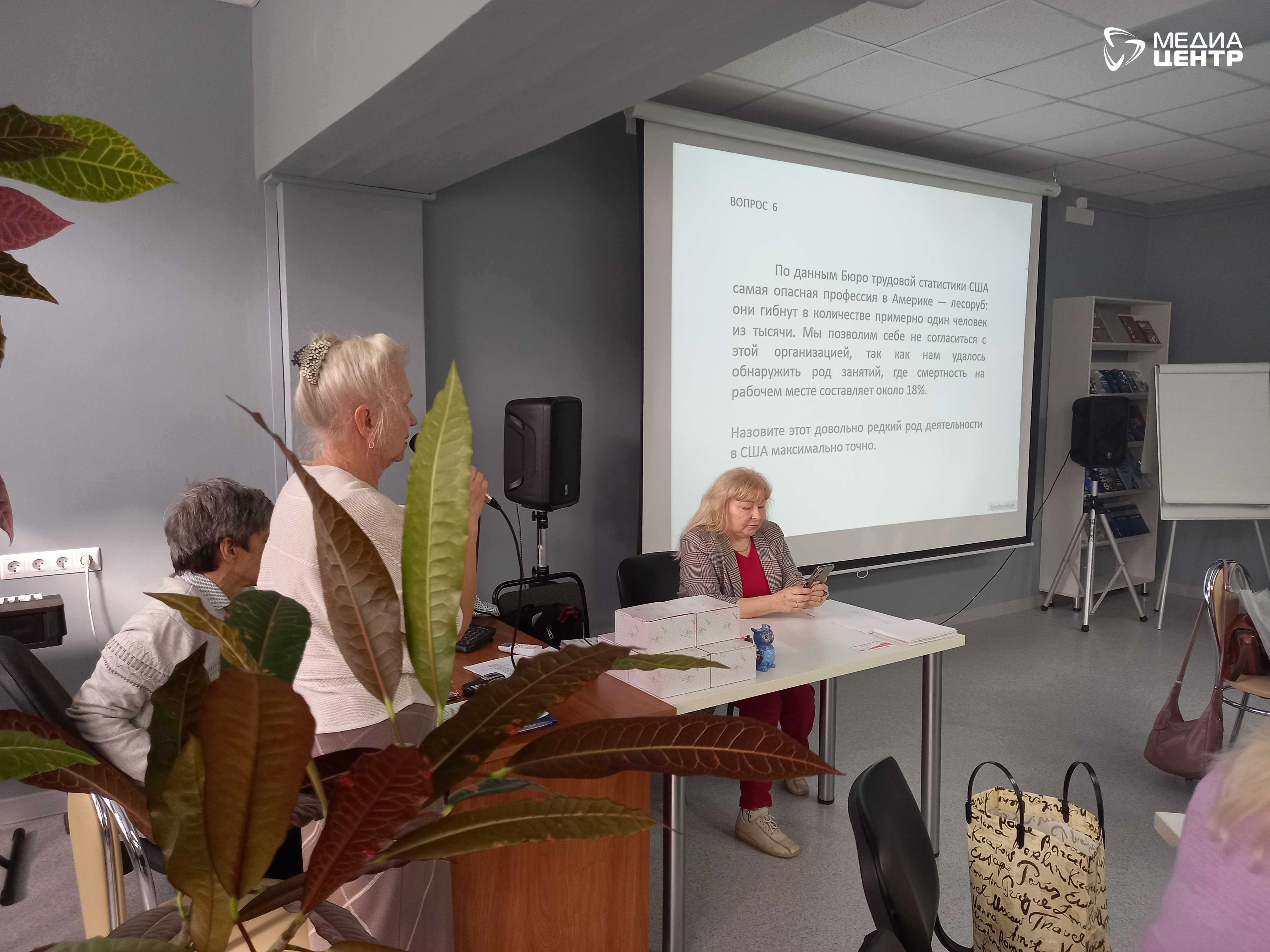 — Клуб с нами третий год. И, потрясающая новость, — мы продолжаем сотрудничество, — говорит Екатерина Геннадьевна. — Я вижу постоянных посетителей, и все больше новых желающих участвовать в игре. Нужно отдать должное энтузиазму Александра и Татьяны Ганкиных. То, что в интеллектуальные игры вовлечены ветераны города из разных сфер, — их заслуга. А какие вопросы сочиняет Александр Борисович!