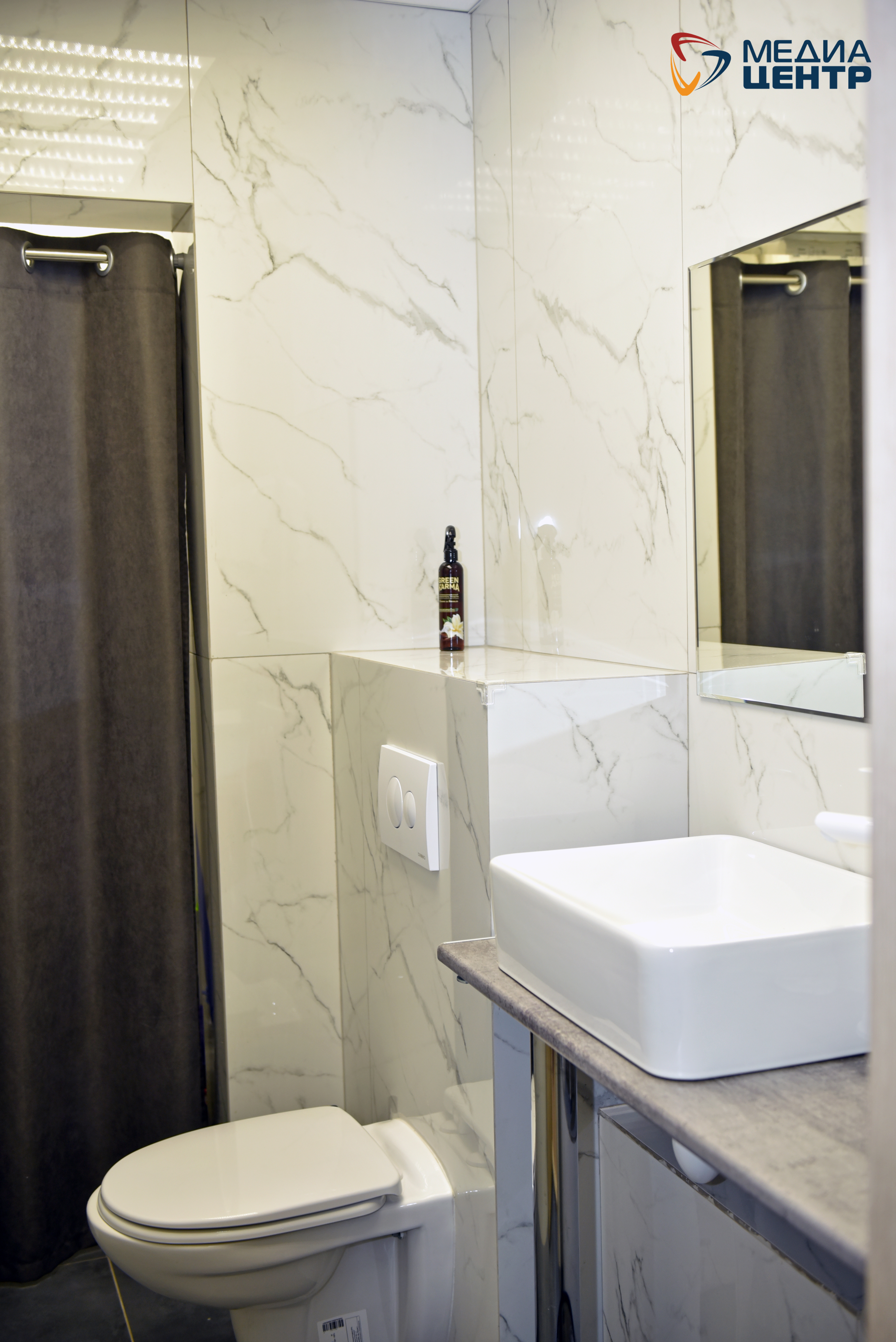 — Начнем с того, что зал, где проходит игра, был отремонтирован в конце прошлого года. После ремонта он стал более удобным и вместительным. Закуплено новое оборудование (проектор, кондиционеры), и теперь мы проводим здесь еще более масштабные массовые мероприятия. В целом же здание проф-союзной библиотеки Череповецкого металлургического комбината было спроектировано в середине 70-х и построено в том виде, в котором мы его используем сейчас. И с тех пор капитально не ремонтировалось, — рассказывает Екатерина Виноградова. — И понятно, что не обошлось без «советского модернизма и классицизма». К примеру, в зале абонемента водосточная труба проходит под потолком над стеллажами с книгами. Мы решили украсить ее цитатой из стихотворения «Маяковского: «А вы ноктюрн сыграть могли бы на флейте водосточных труб?» Или удивительное свойство просторных помещений, где по проекту предусмотрена одна розетка… Что сделано и чем гордимся? В первую очередь двумя туалетными кабинками, удобными, выполненными качественно и в современном стиле. Туалет — это важно. Как говорится, унитаз — лицо хозяйки. Что еще? Электрика.
