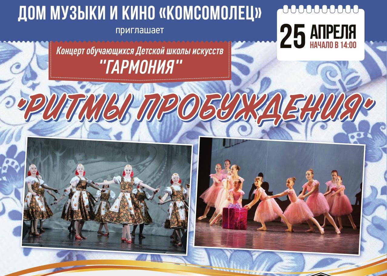 14:00 – концерт обучающихся Детской школы искусств «Гармония» – «Ритмы пробуждения» (0+) в Доме музыки и кино «Комсомолец».