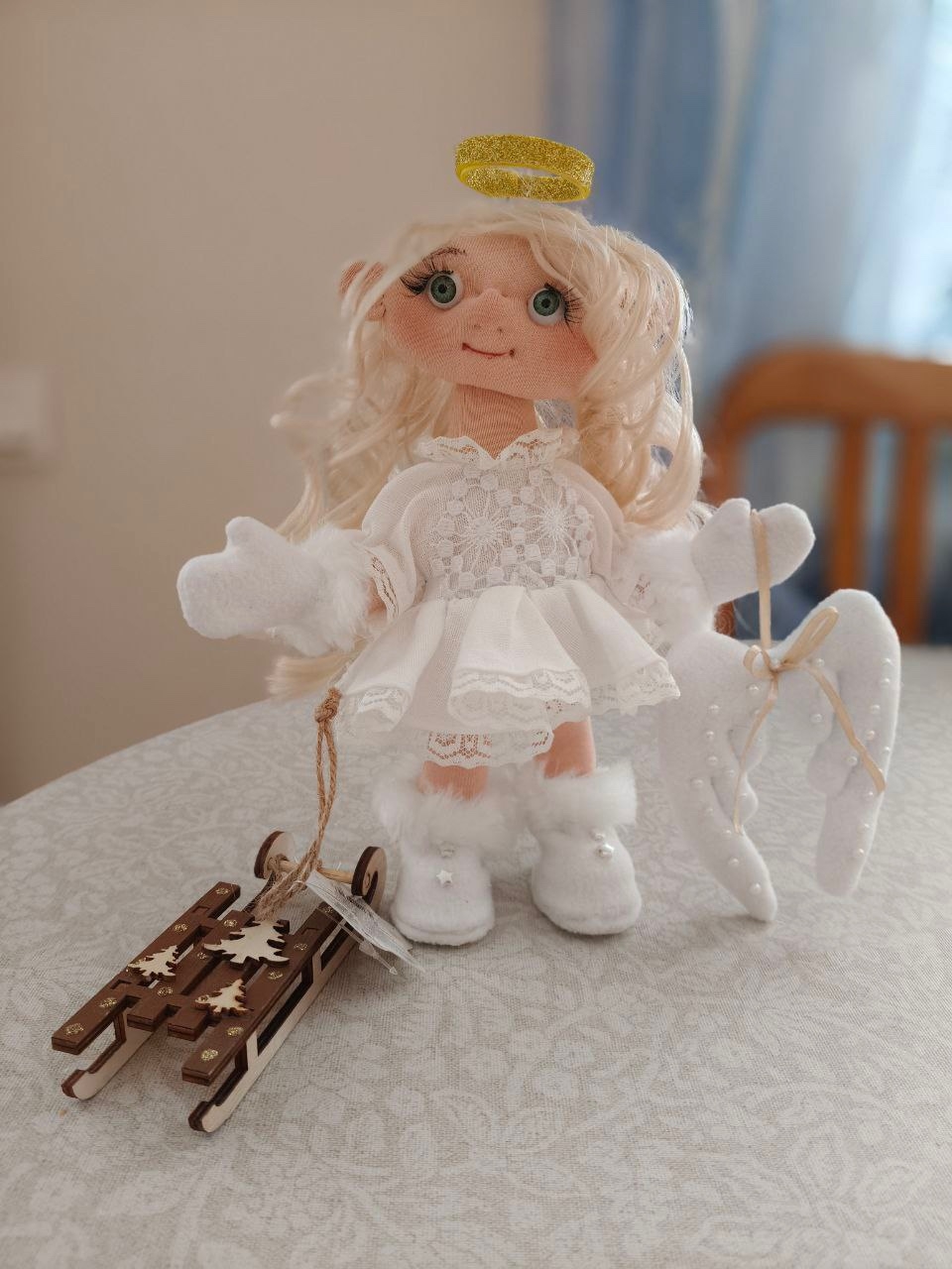 — Ангелов я много делаю, это тоже одна из любимых моих кукол. Мне кажется, ангел — хороший подарок. Я их раздариваю внучкам, по-другам, на рождение ребенка, на память о знаменательной дате. И всегда желаю, чтобы они стали оберегом для человека. В подарок и домовенок, которых я тоже люблю делать.