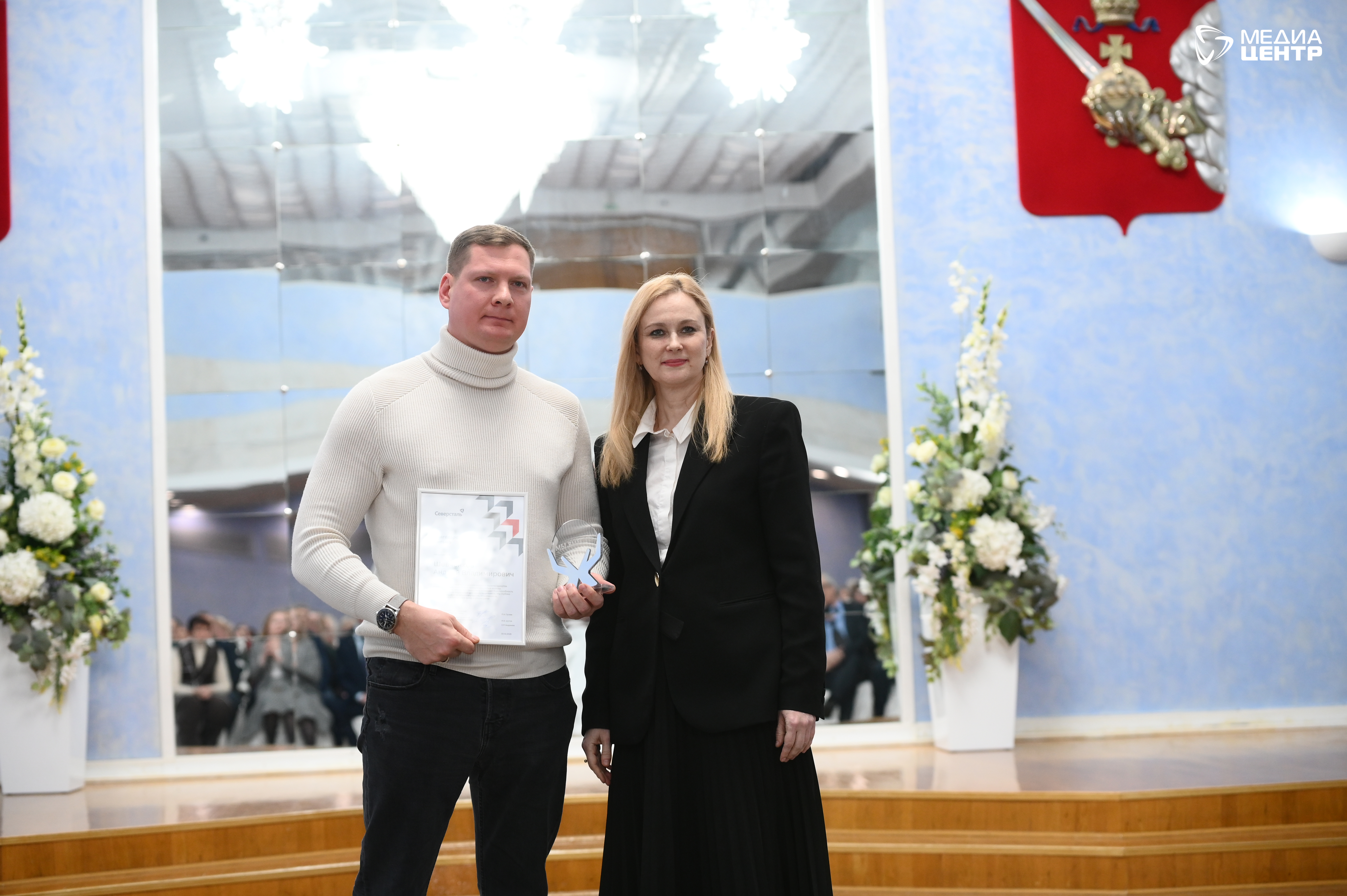Во Дворце металлургов прошло награждение волонтеров, работников и ветеранов компании «Северсталь», а также предпринимателей за помощь участникам СВО. Тех, кто передает средства и вещи, собирает гуманитарные грузы, плетет маскировочные сети.