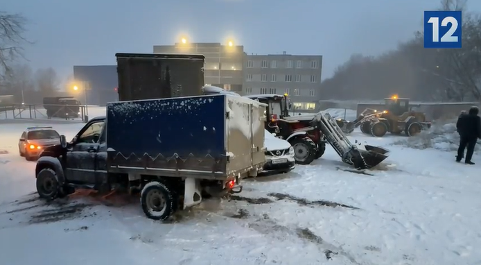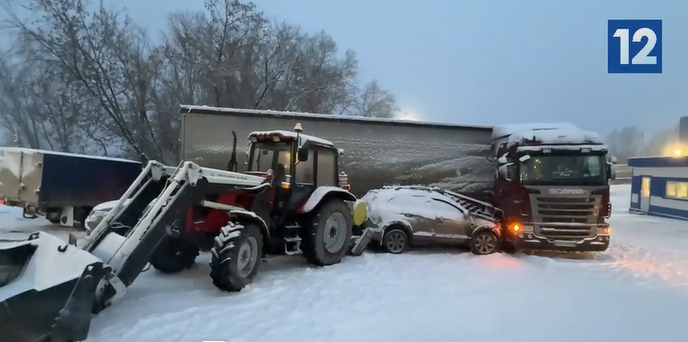 Куча мала из автомобилей образовалась на спуске в сторону улицы Металлистов от перекрестка Парковая-Бабушкина. Как сообщают в ГАИ, всё началось с фуры. Ее развернуло на заснеженной дороге, а дальше, по цепочке, к большегрузу примкнули еще пять авто.