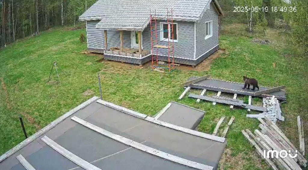 Марина Анатольевна переслала нам это видео. На нем действительно видно, как медведь спокойно «прогуливается» около дома – участок расположен рядом с лесом. На улице светло, на часах – почти семь вечера, 19 мая.
