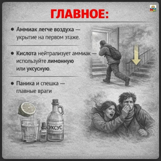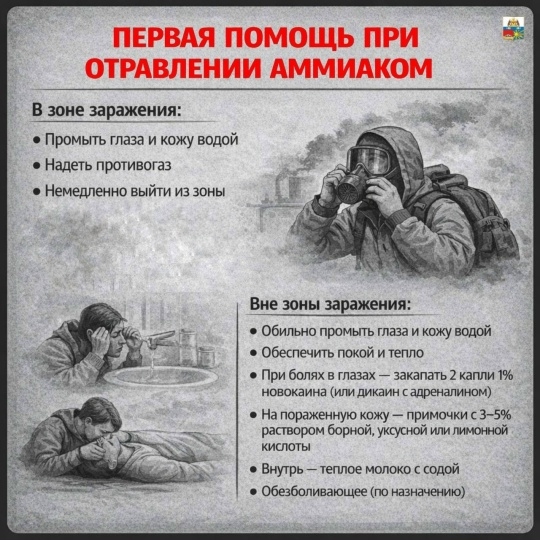 - Запах нашатыря — первый признак химического заражения аммиаком.