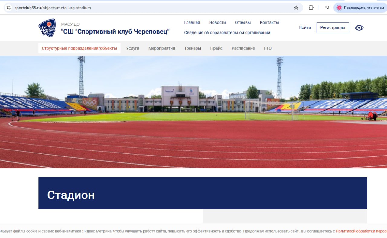 На сайте спортивного клуба «Череповец» легендарный городской стадион теперь обозначен просто как «Стадион». Хотя в адресной строке браузера пока ещё можно увидеть старое название — «Металлург».