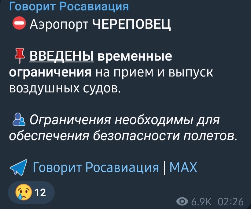 Изображения и источник: каналы MAX Росавиация, ЕДДС Череповецкого округа, Радар Вологда
