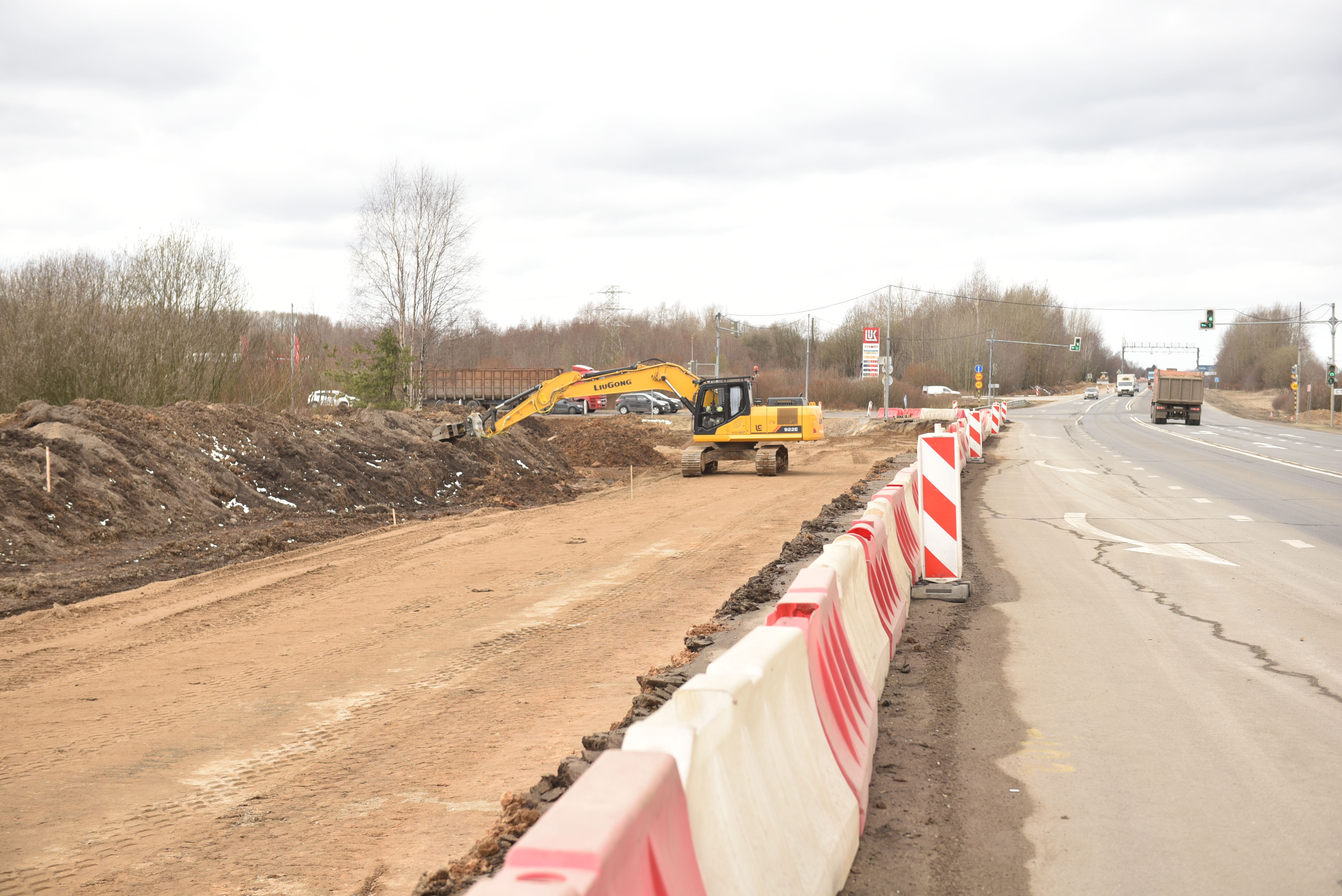 На следующем этапе начнется устройство земельного полотна и строительство переходно-скоростных полос. В это время движение транспорта будет регулироваться временным светофором.