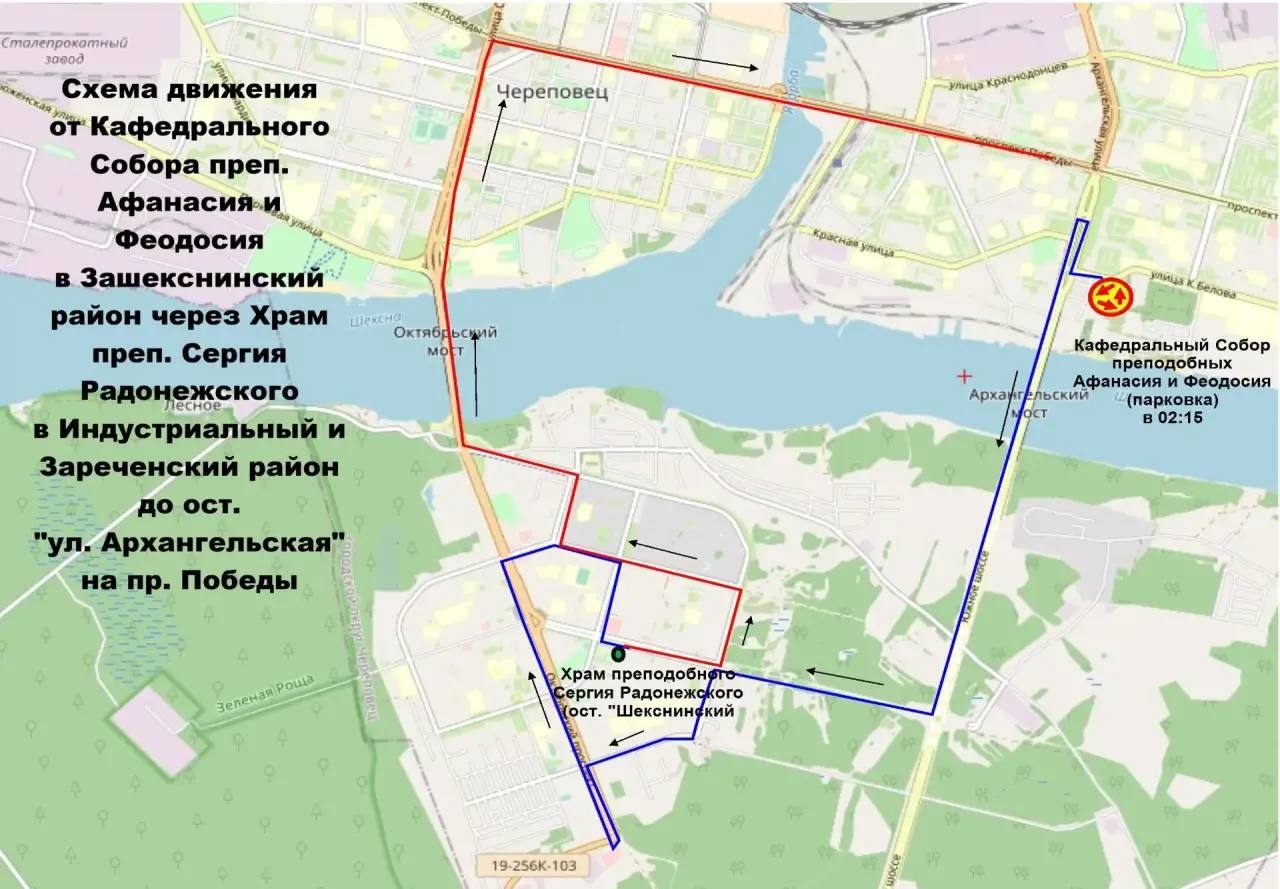 2. Заречье → Индустриальный район → Северный район → Заречье.