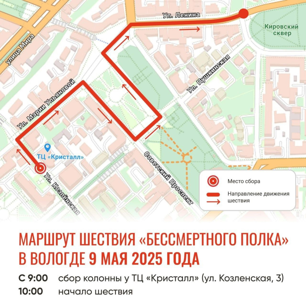 Единый строй Бессмертного полка пройдёт по улицам Вологды впервые с 2022 года. Также можно присоединиться к акции в онлайн-режиме, разместив фото героя своей семьи на экранах так называемых умных остановок.